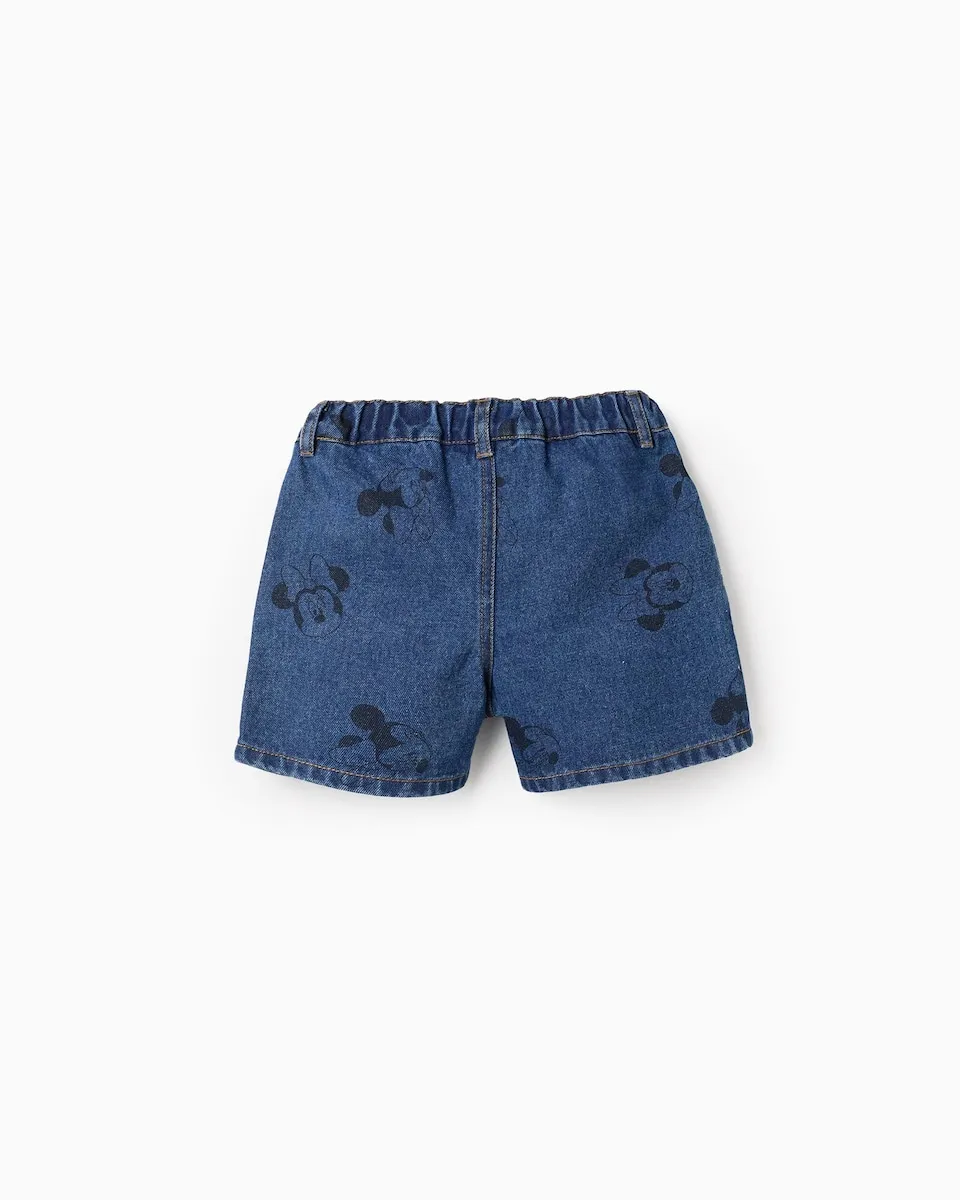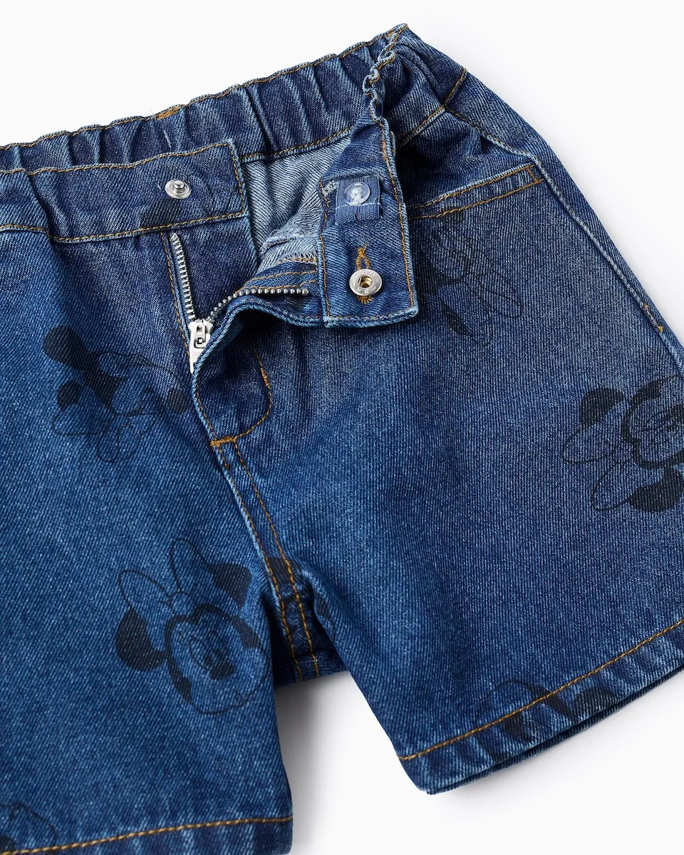 Синие джинсовые шорты для девочки, 100% хлопок, с мотивом Минни. Два кармана. Эластичный пояс, регулируемый внутри с помощью резинок и пуговиц. Универсальная и вне времени вещь. Big Me: застёгивается на кнопку-фиксаторы под декоративной кнопкой до размера 8/9, чтобы облегчить одевание и поддержать автономию вашей дочери.