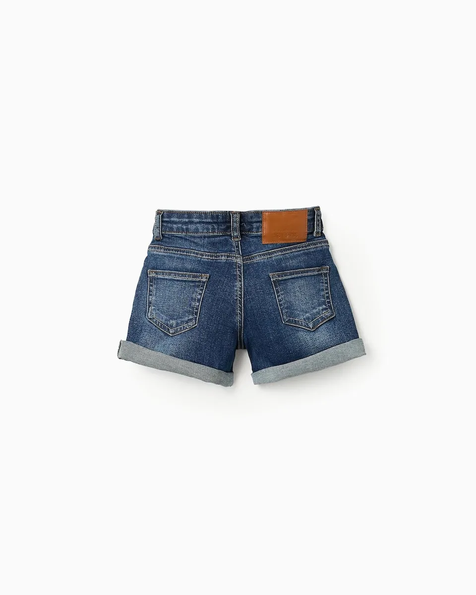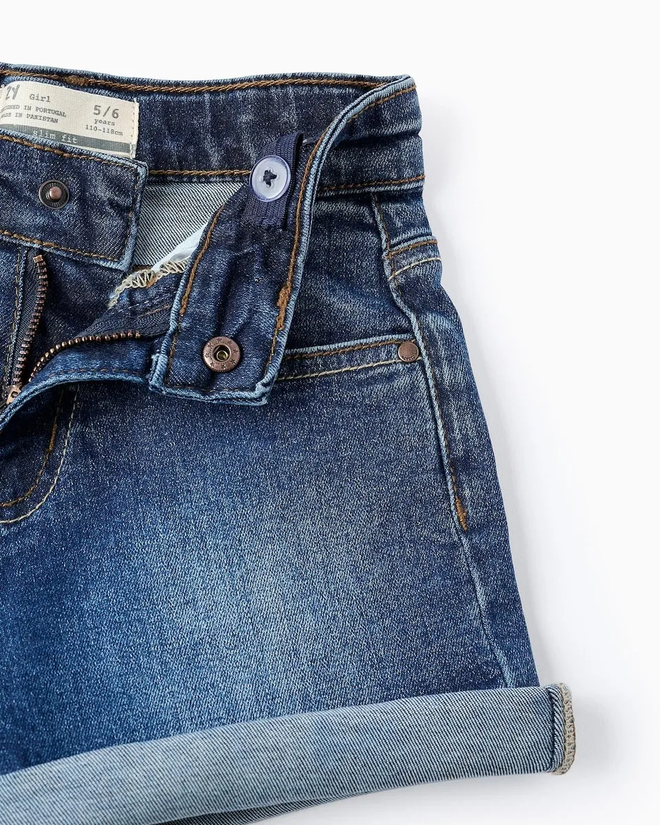 Джинсовые шорты для девочки из хлопка с добавлением эластана для большего комфорта и свободы движений. Пять карманов. Внутренний пояс с регулируемой резинкой и кнопками. Складные подолы. Big Me: застегивается на кнопке под декоративной кнопкой до размера 8/9, чтобы облегчить процесс одевания и способствовать самостоятельности вашей дочери.