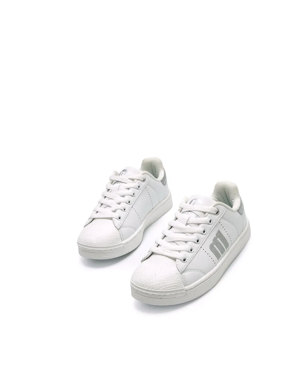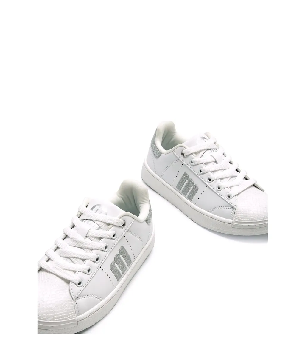 Кроссовки для девочек бренда Mtng. Эти кроссовки выделяются современным дизайном с блестящими деталями, включая боковой логотип и усиление на пятке. С шнуровкой, они обеспечивают надежную и комфортную посадку. Плоская подошва обеспечивает стабильность и повседневный стиль.