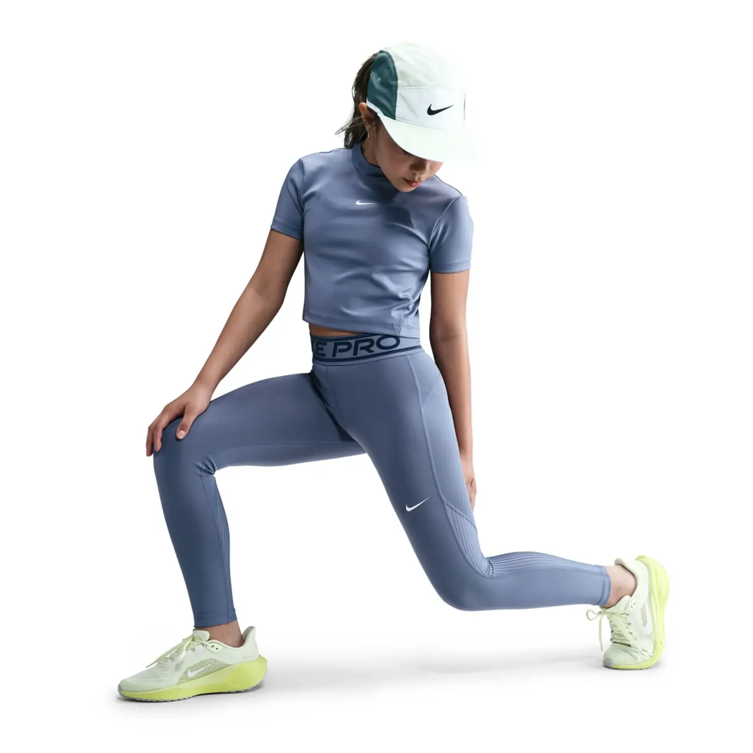 Пояс этих леггинсов Nike Pro выполнен из эластичной флокированной ткани для мягкого бархатистого ощущения. Технология Dri-FIT для отвода влаги и сетка с затенёнными полосами в области икр обеспечивают прохладу.