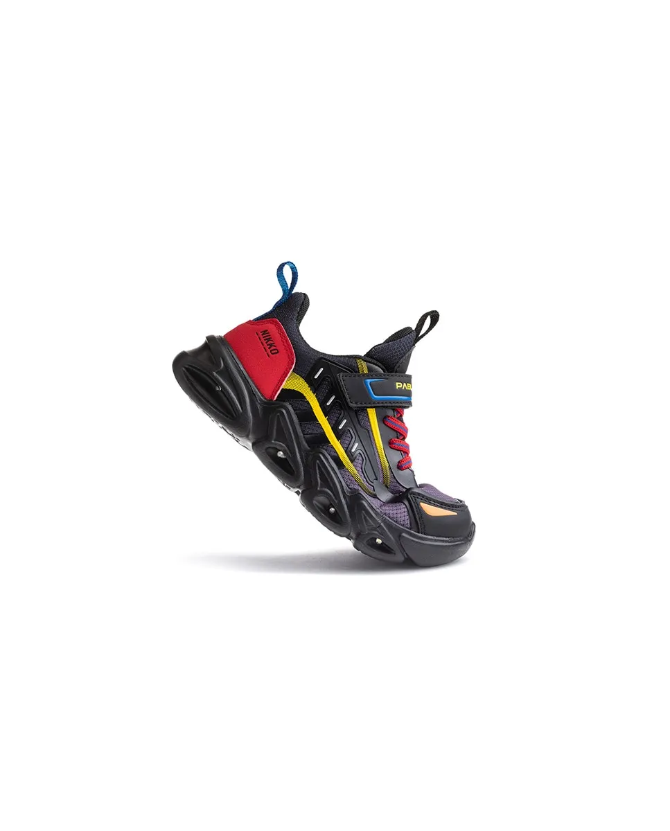 Детские кроссовки Pablosky с липучкой. Дизайн этих кроссовок вдохновлен японской культурой и они имеют огоньки, которые светятся при движении. Классные, правда? 9 из 10 мини-ниндзя их рекомендуют! Материалы высшего качества для сочетания стиля и прочности. Текстильная подкладка для поддержки комфорта ног, предотвращая пот и неприятные запахи. Подошва для максимального комфорта на весь день с пеной 6 мм, которая подстраивается под каждый шаг. Больше никаких скольжений! Гибкая, прочная и безопасная резиновая подошва, очень безопасная. Легкое застегивание на липучку! И надежная фиксация для любой ноги! Кроме того, с внутренними защитами для пятки и носка, дополнительно имеется внешняя резиновая защита носка для большей безопасности и прочности. Разработано в Испании. Изготовлено в КНР. Внешний материал: 50% Другие материалы Внешний материал: 50% Текстиль Внутренний материал: 100% Текстиль Подошва: 100% Синтетика.