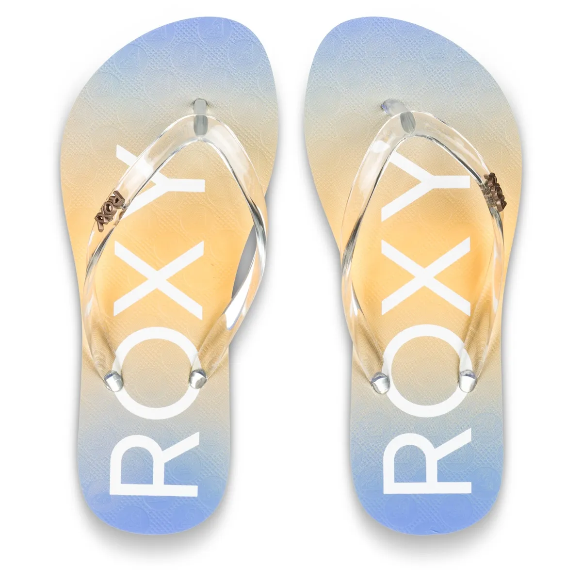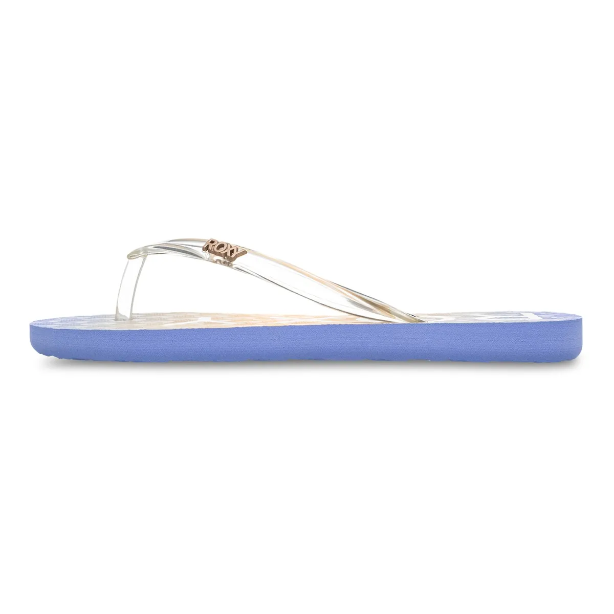 Тапочки для детей 8-16 лет. Характеристики включают: Изготовлено из материалов без ПВХ, Корпус: Корпус из прозрачной синтетической резины, Заколка с логотипом Roxy, Стелька: Резина с текстурой и логотипом Roxy на экологичном принте, Подошва: наружная подошва из резины.