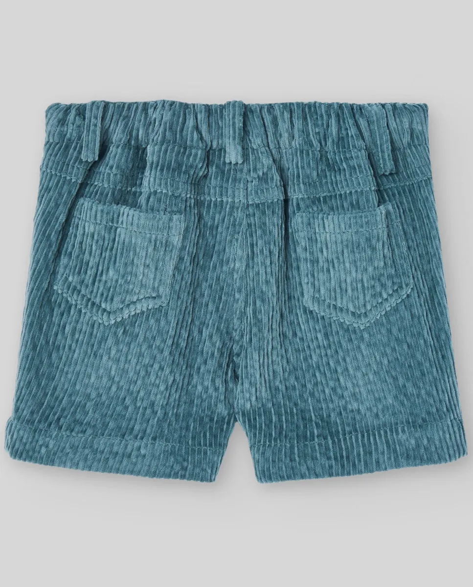 Короткие брюки из вельвета с резинкой на спинке и декоративной кнопкой спереди. Традиционный стиль для коллекции POMPON.