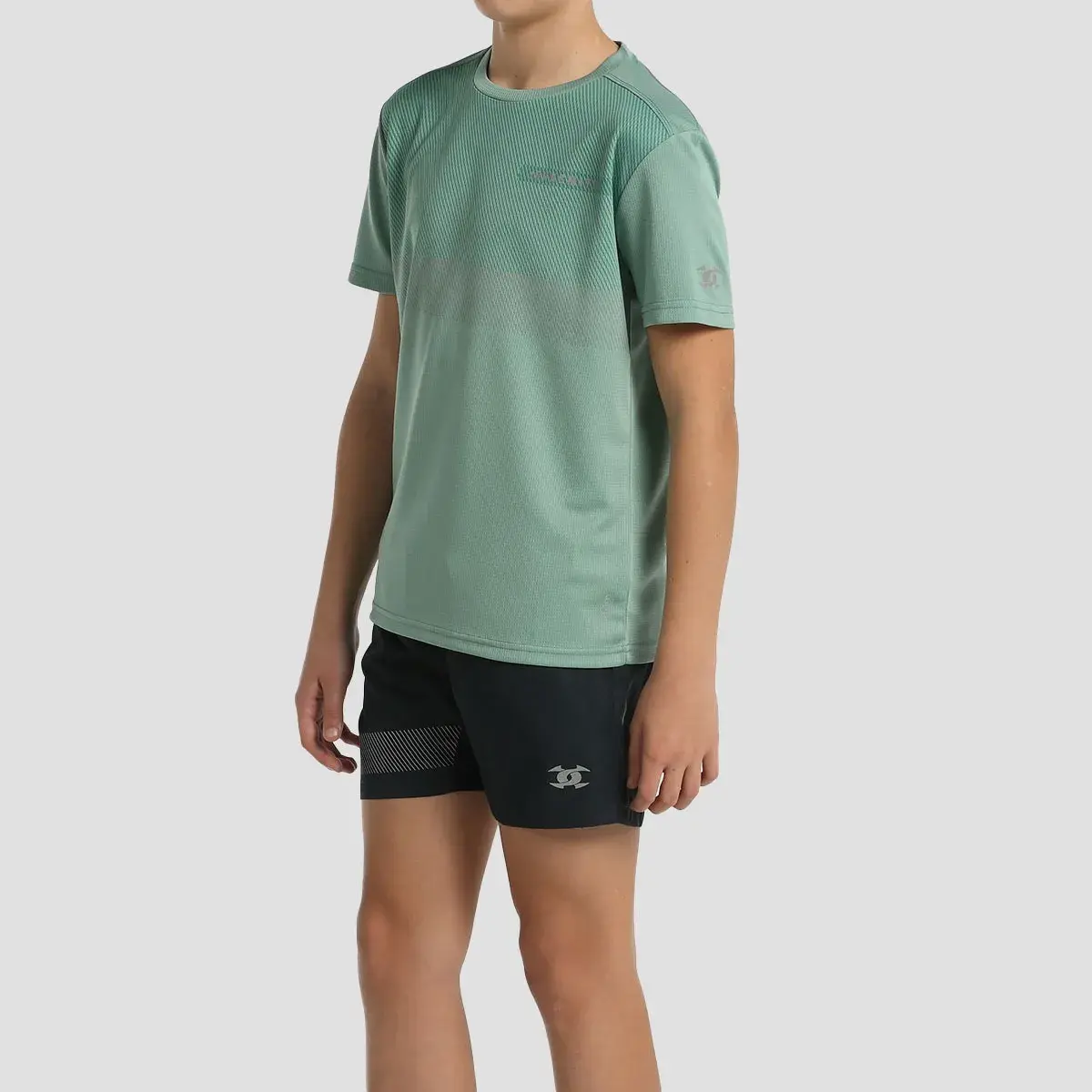 Комплект для мальчика для бега. Футболка из полиэстерового интерлока с отделкой Quickerdry. графика спереди и светоотражающие детали спереди и сзади. брюки из легкой микрофибры с боковыми карманами и светоотражающими деталями.