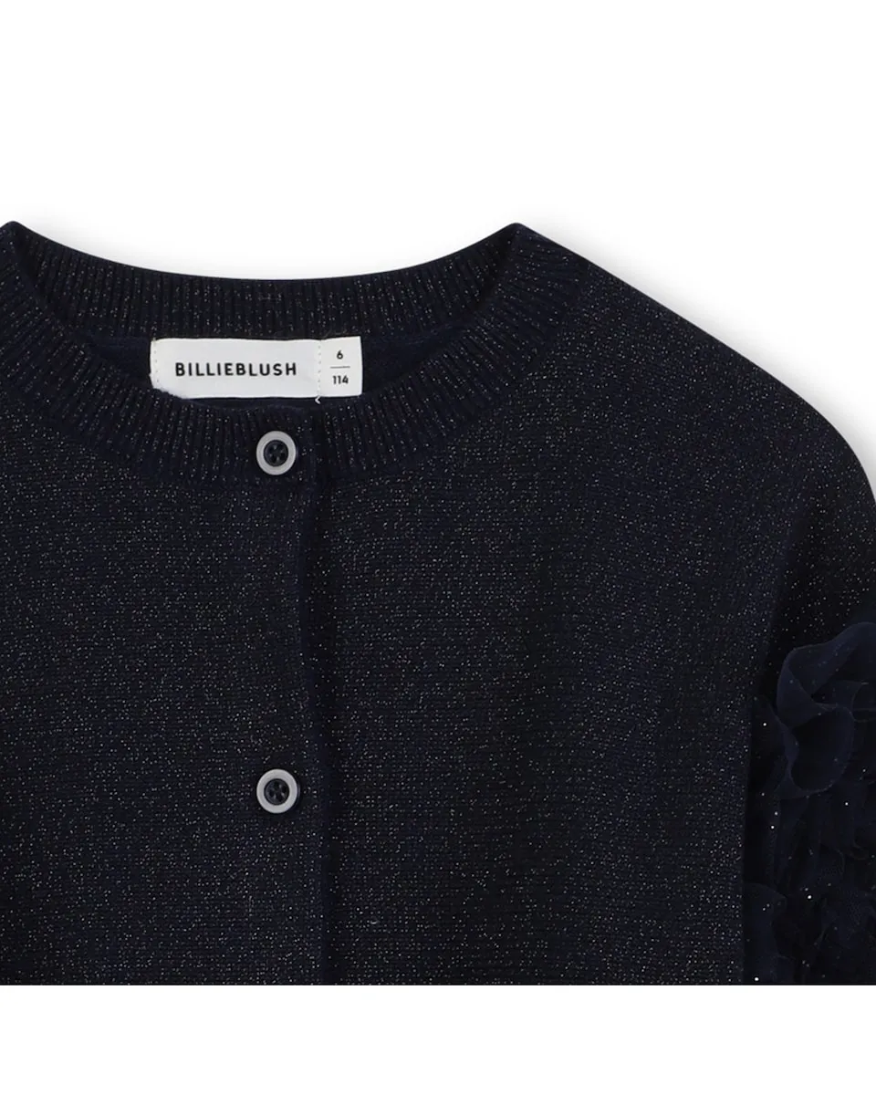 Придайте элегантности образу вашего ребенка с помощью этого кардигана из трикотажа BILLIEBLUSH. Закрытие на пуговицах спереди обеспечивает идеальную посадку, в то время как тюлевая отделка на плечах придает ему легкий и стильный вид. Простой, но утонченный дизайн, идеально подходящий для завершения любого наряда с ноткой мягкости.