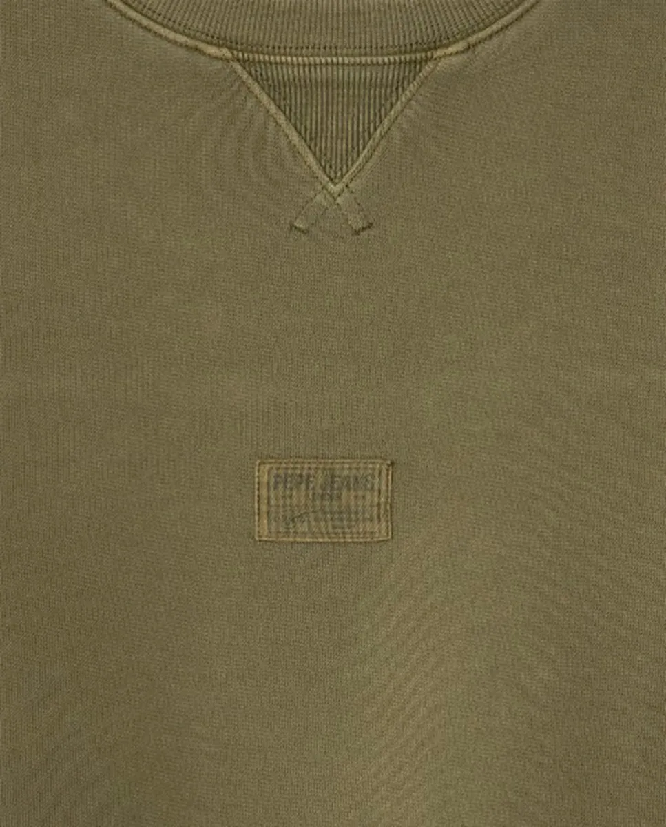 Свитшот свободного кроя с эффектом стирки, регулировка на манжетах и нижней части, боковые швы и этикетка бренда на передней части.