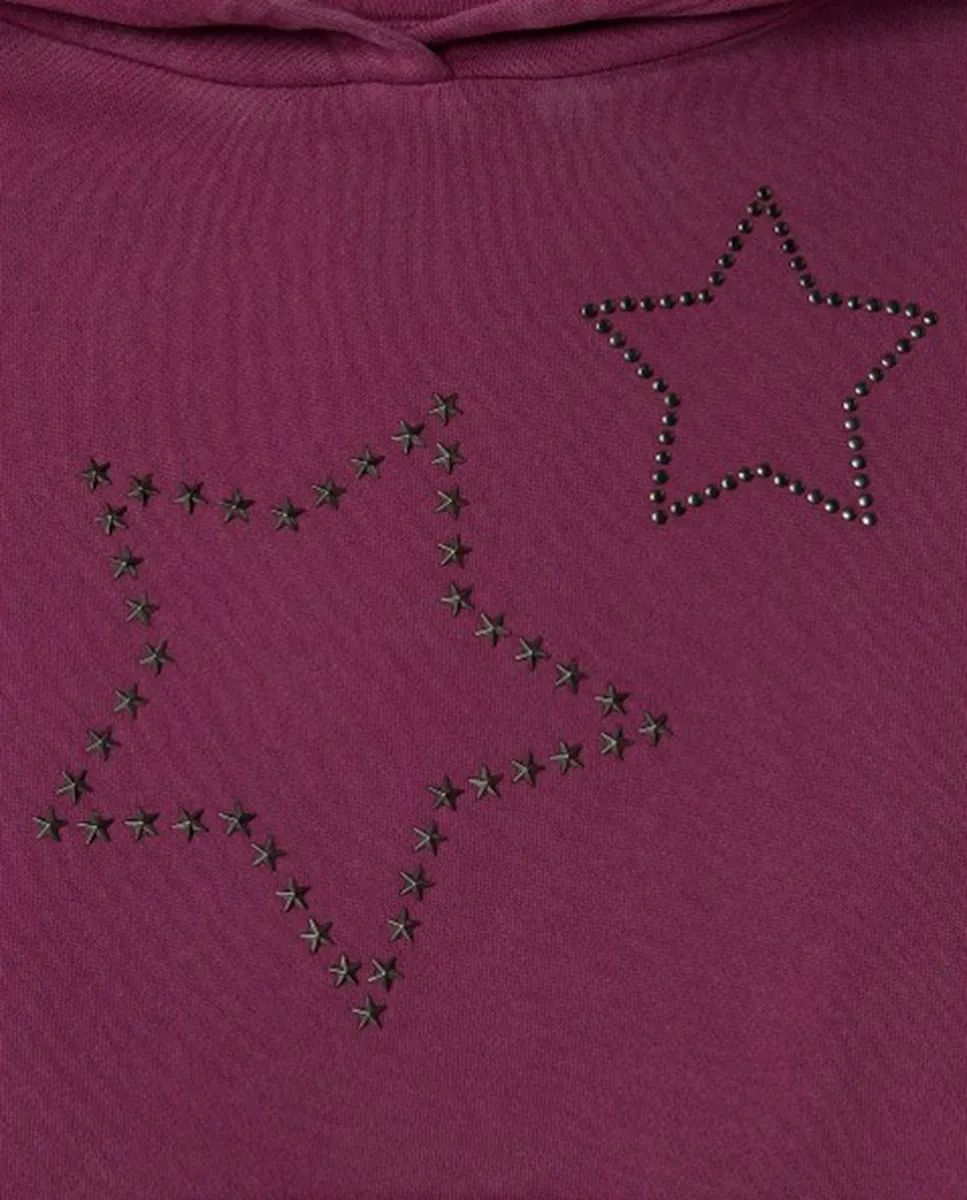 Длинный худи с капюшоном и кенгуровым карманом, свободного кроя, с дизайном в виде звездных заклепок на передней части и эффектом стирки.