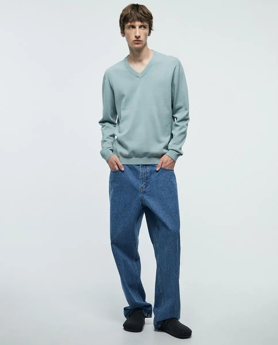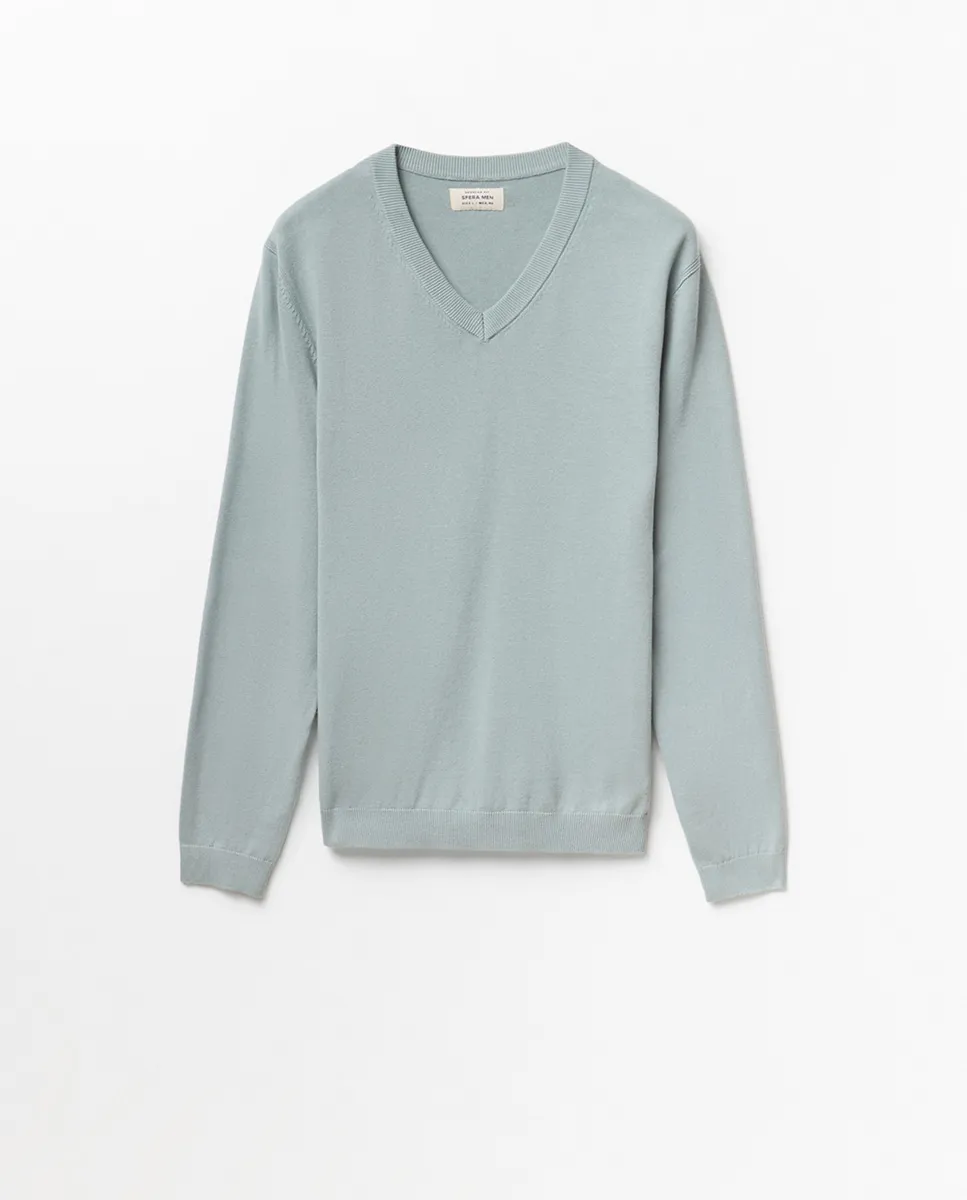 Пуловер с V-образным вырезом. 100% хлопок