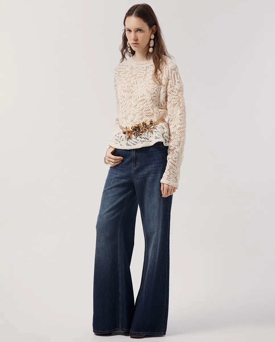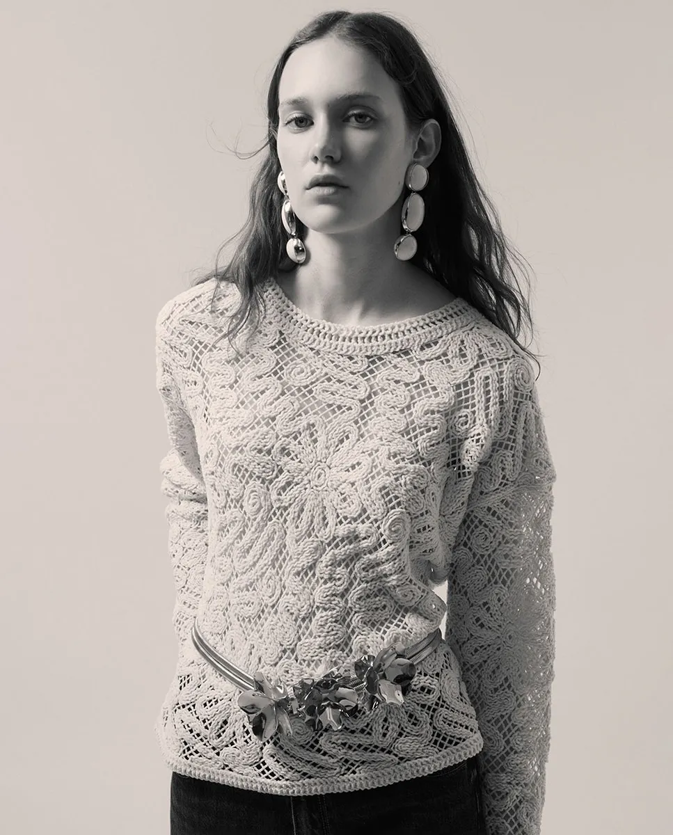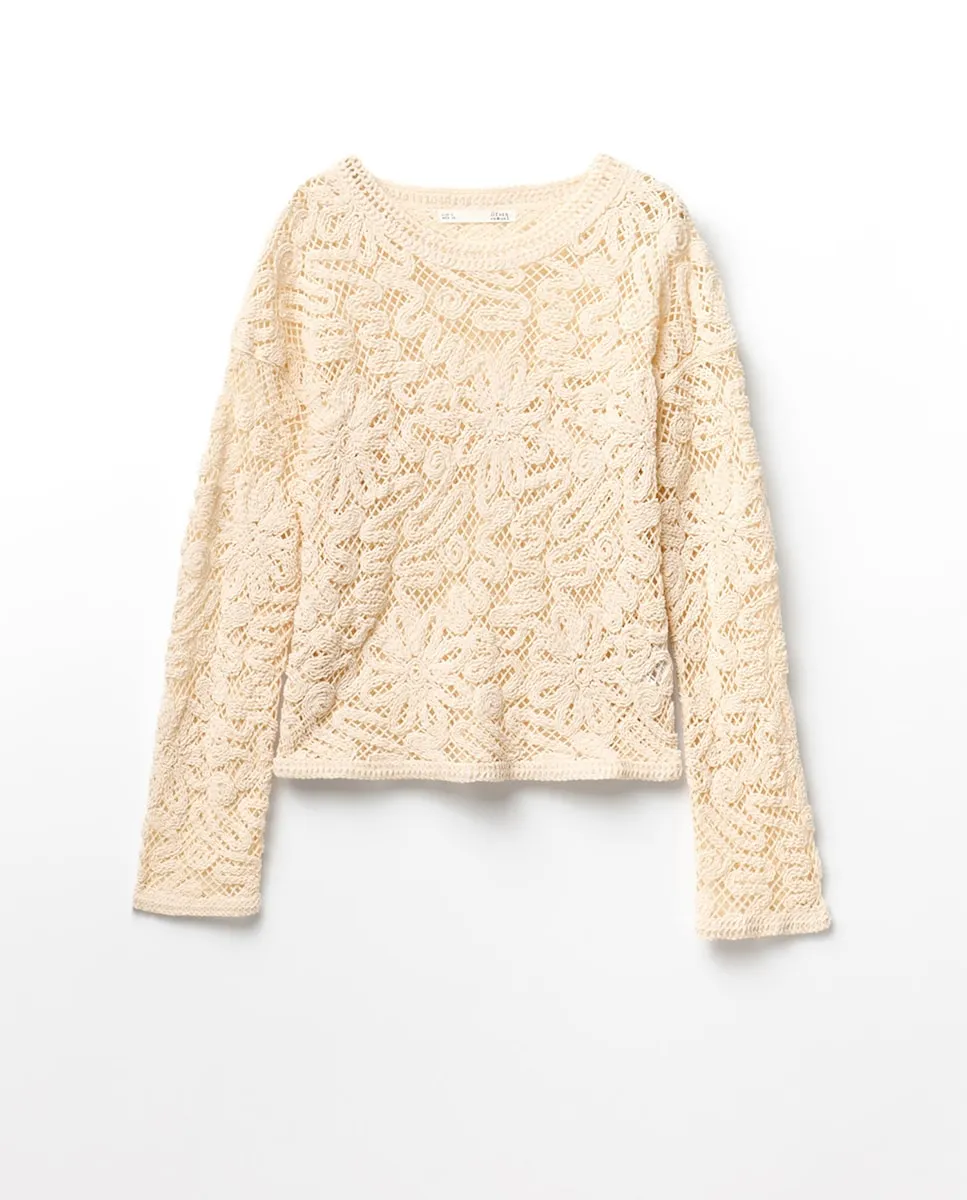Жерси из чениллы с вышивкой. Длинные рукава и круглая горловина