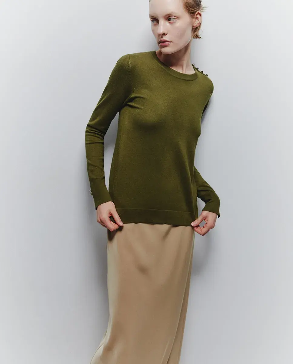 Джерси с декоративной пуговицей Sfera, оливковый 4 456₽