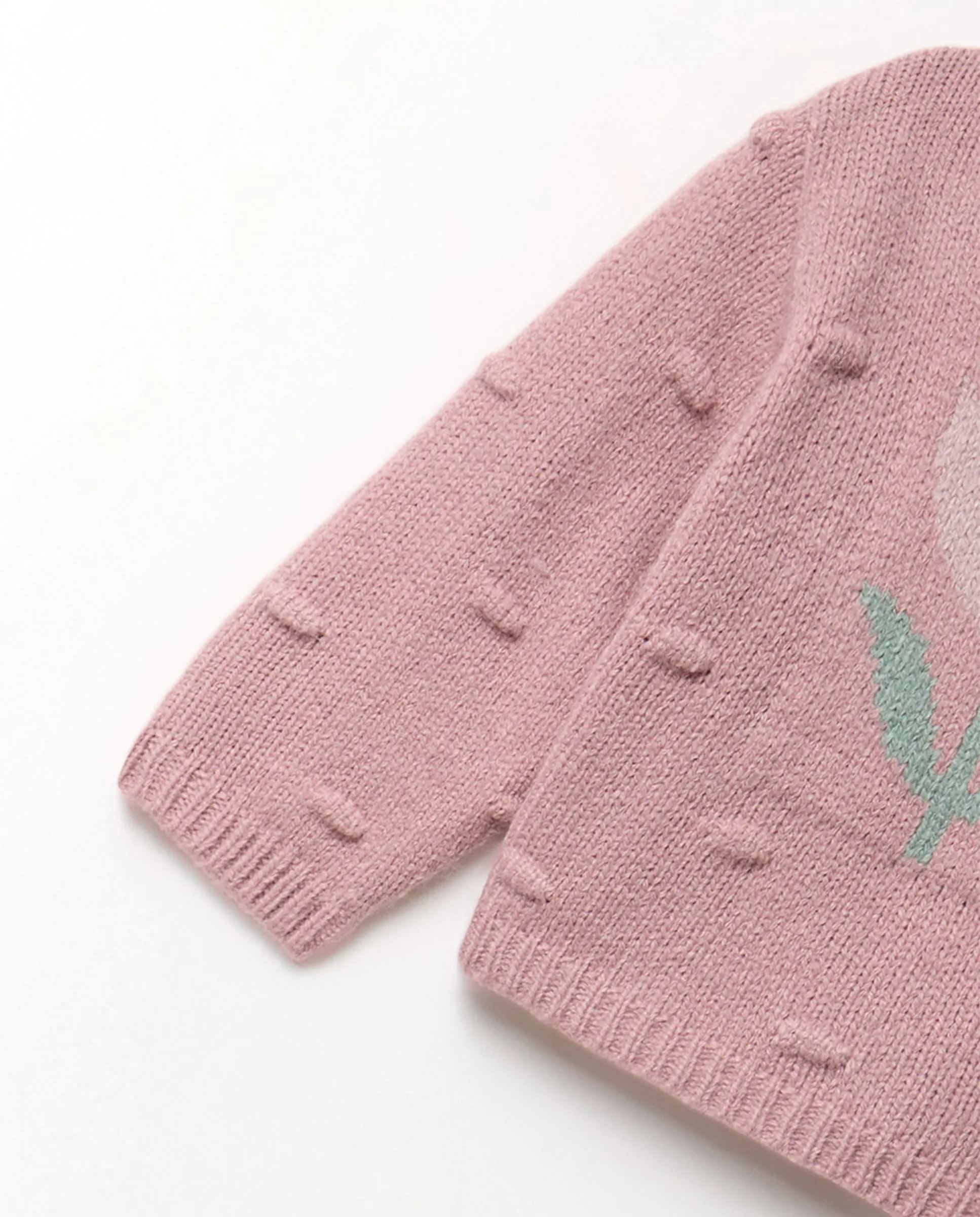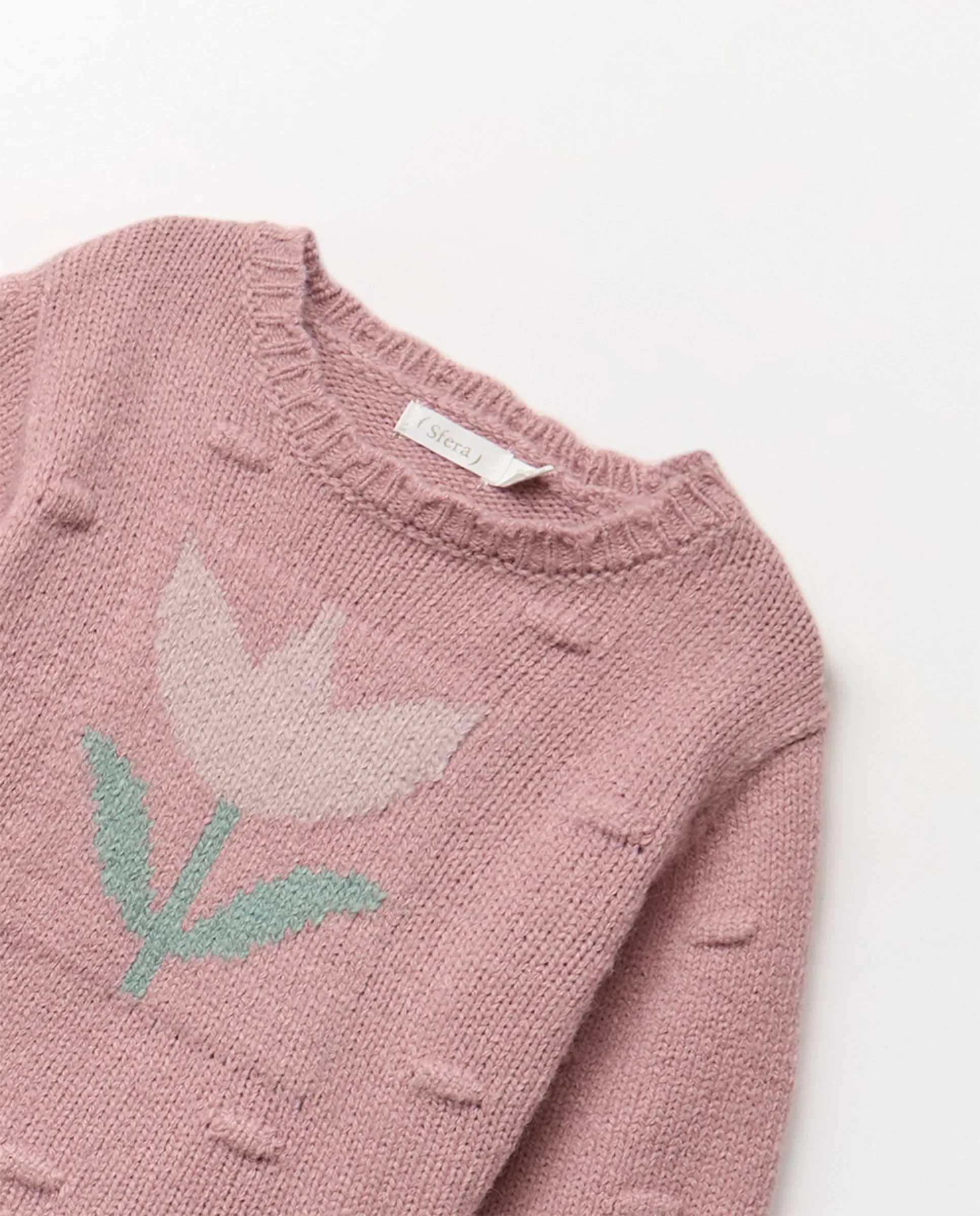 Джемпер с круглым вырезом и интарсией в виде цветка