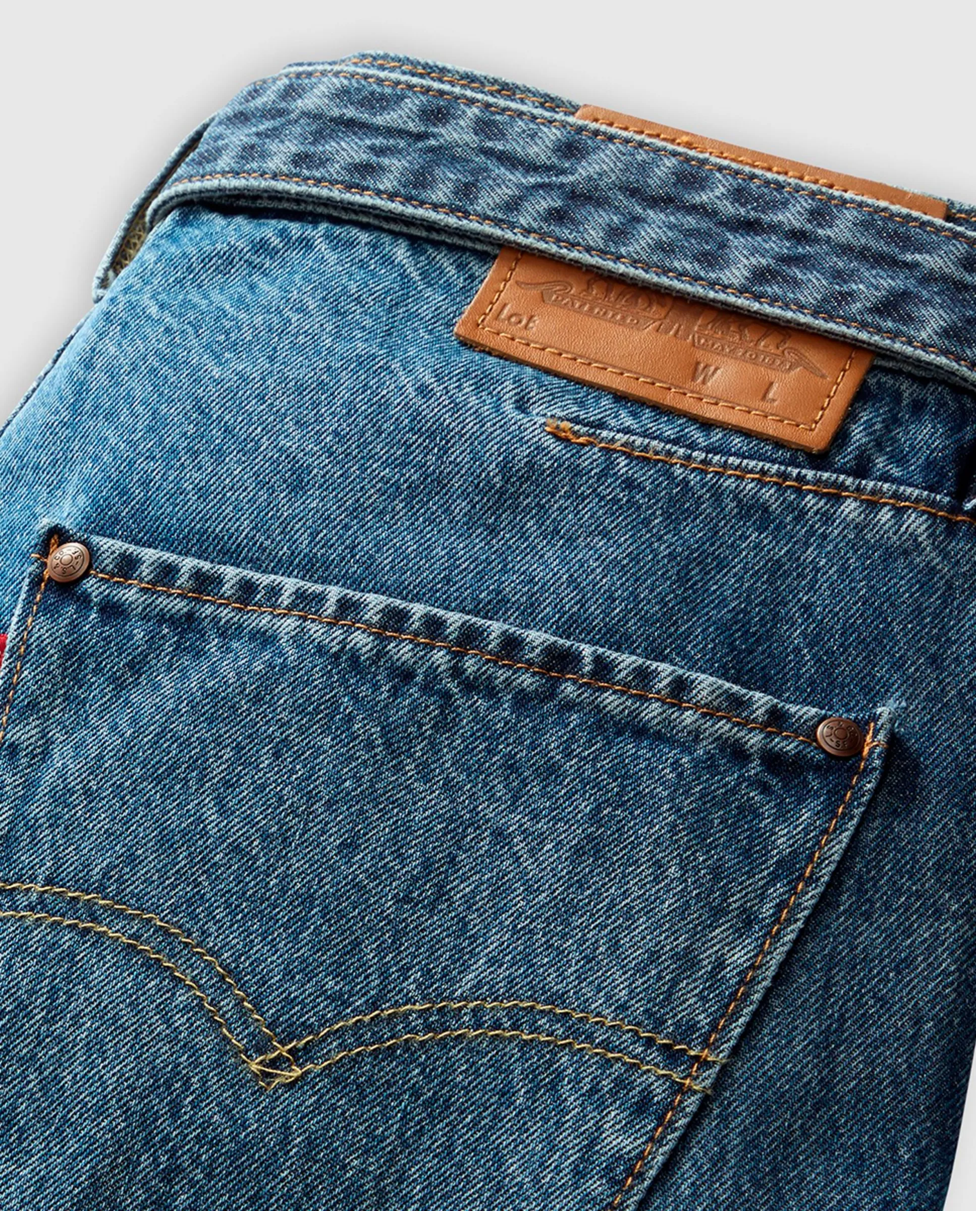 Vaquero Twisted Baggy средняя стирка. Изготовлен из 100% хлопка с использованием водосберегающих технологий, что снижает воздействие на окружающую среду. На талии, свободный крой от бедра до щиколотки, широкое отверстие для ноги и регулируемый пояс. Застежка на кнопку и молнию.