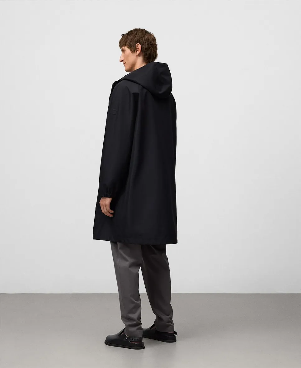 Длинная парка свободного кроя для мужчин. Регулируемый капюшон с внутренним шнурком. Длинные рукава с эластичными манжетами. Невидимая застежка на молнии и кнопках спереди. Карманы с клапанами спереди. Внутренний карман. Внутренний пояс. Полуподкладка. Вышитый логотип на левом рукаве.