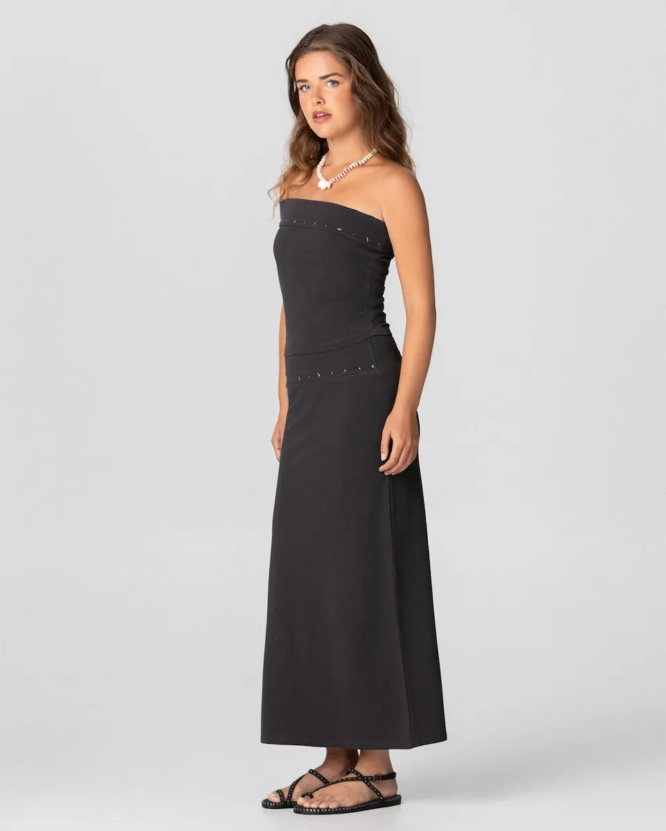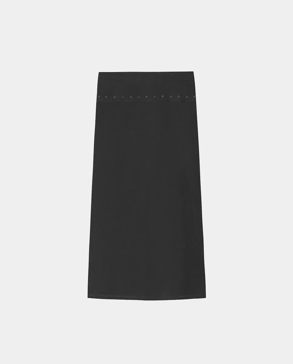 Миди юбка черного цвета с элегантной звездной отделкой на талии. Сшита из эластичной ткани, которая полностью адаптируется к вашей фигуре с максимальным комфортом. Сочетайте ее с топом ZENDA в тон и получите полный стильный образ.