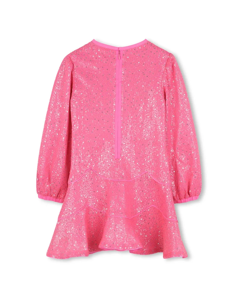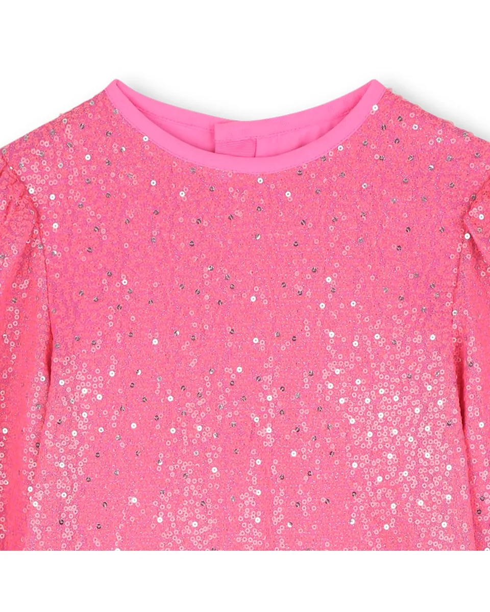 Это исключительное платье BILLIEBLUSH, полностью украшенное блестящими пайетками, заставит вашу маленькую звезду сиять. Благодаря круглому вырезу и длинным рукавам оно сочетает в себе элегантность и гламур. Вискозная подкладка обеспечивает комфорт и легкость, в то время как молния на спине делает это платье таким же практичным, как и ослепительным.