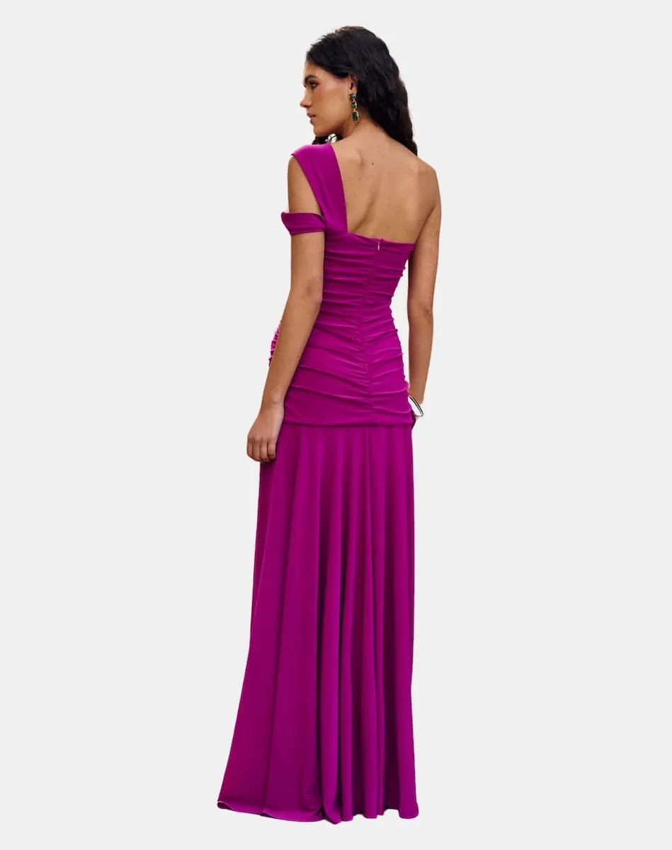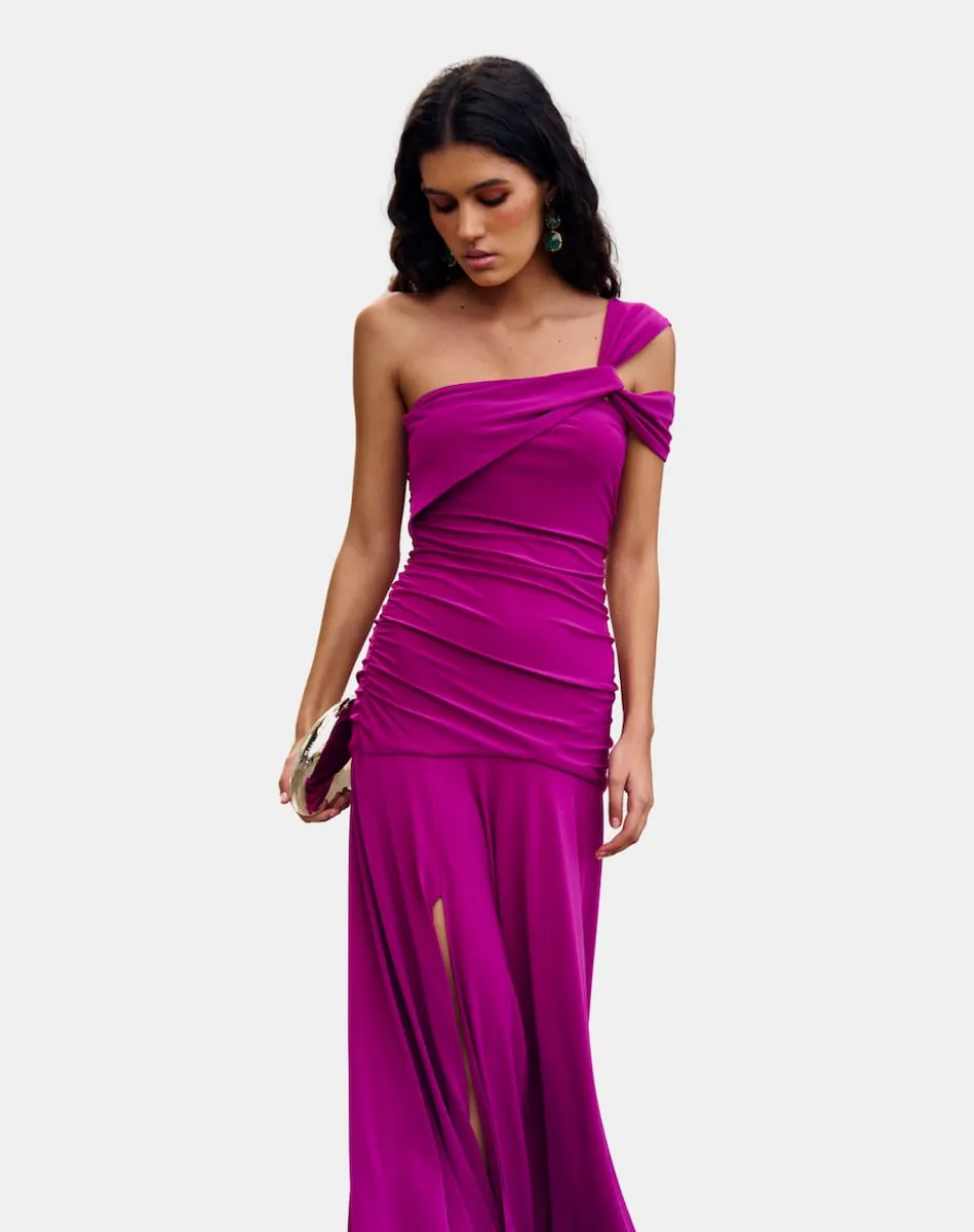 Длинное платье с асимметричным вырезом Miphai, фуксия