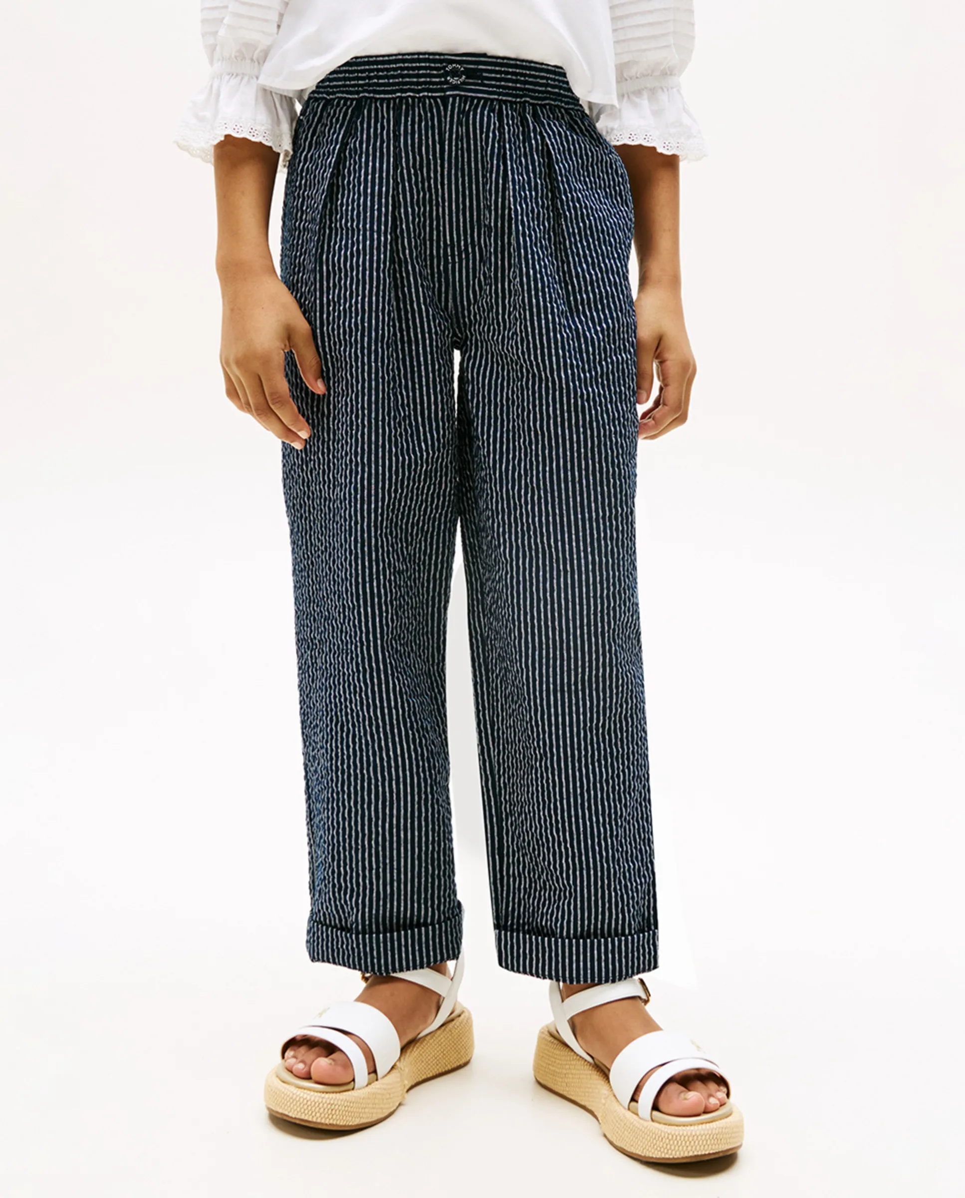 Длинные прямые брюки для девочки из структурированной ткани Tommy Hilfiger, синий 7 292₽