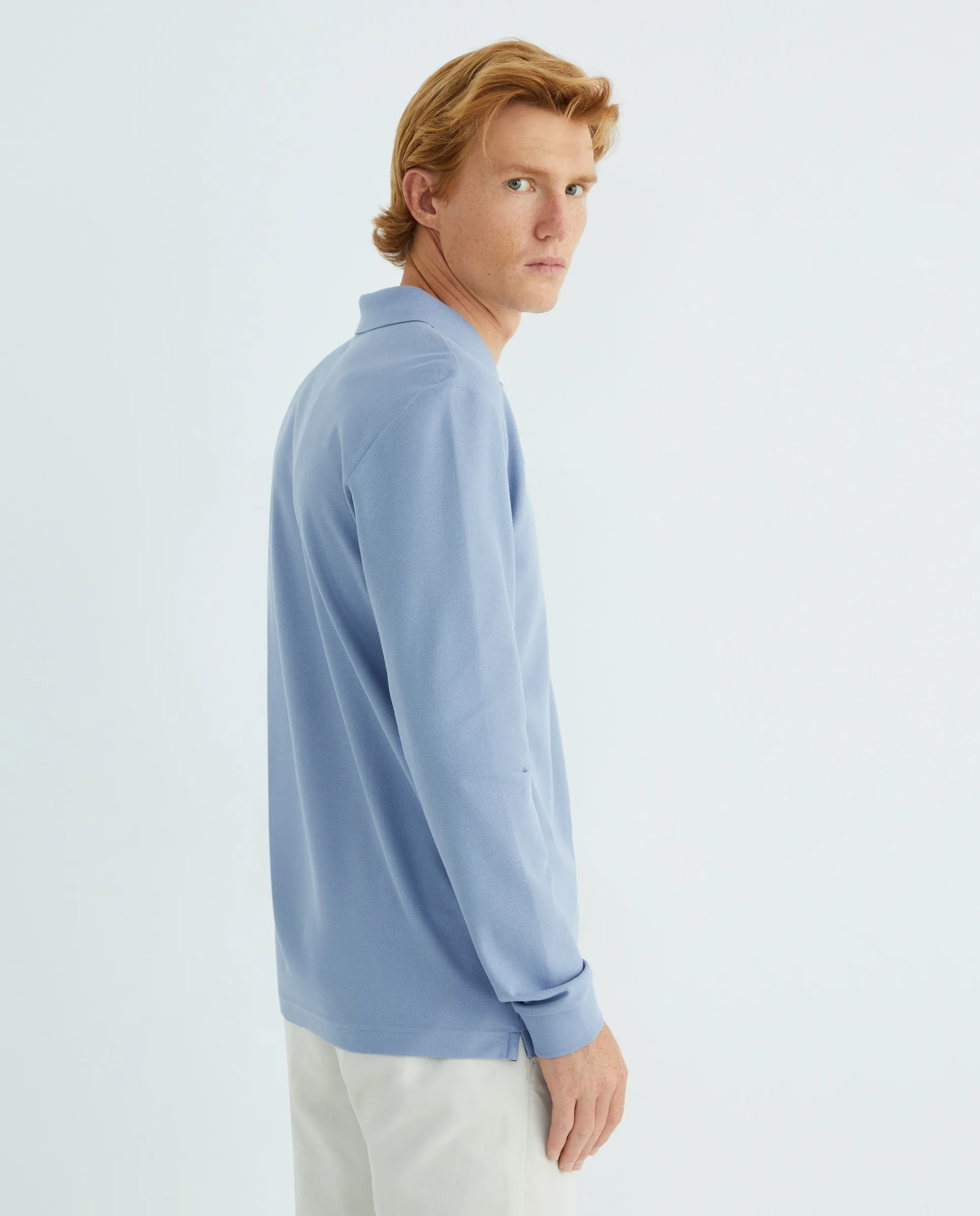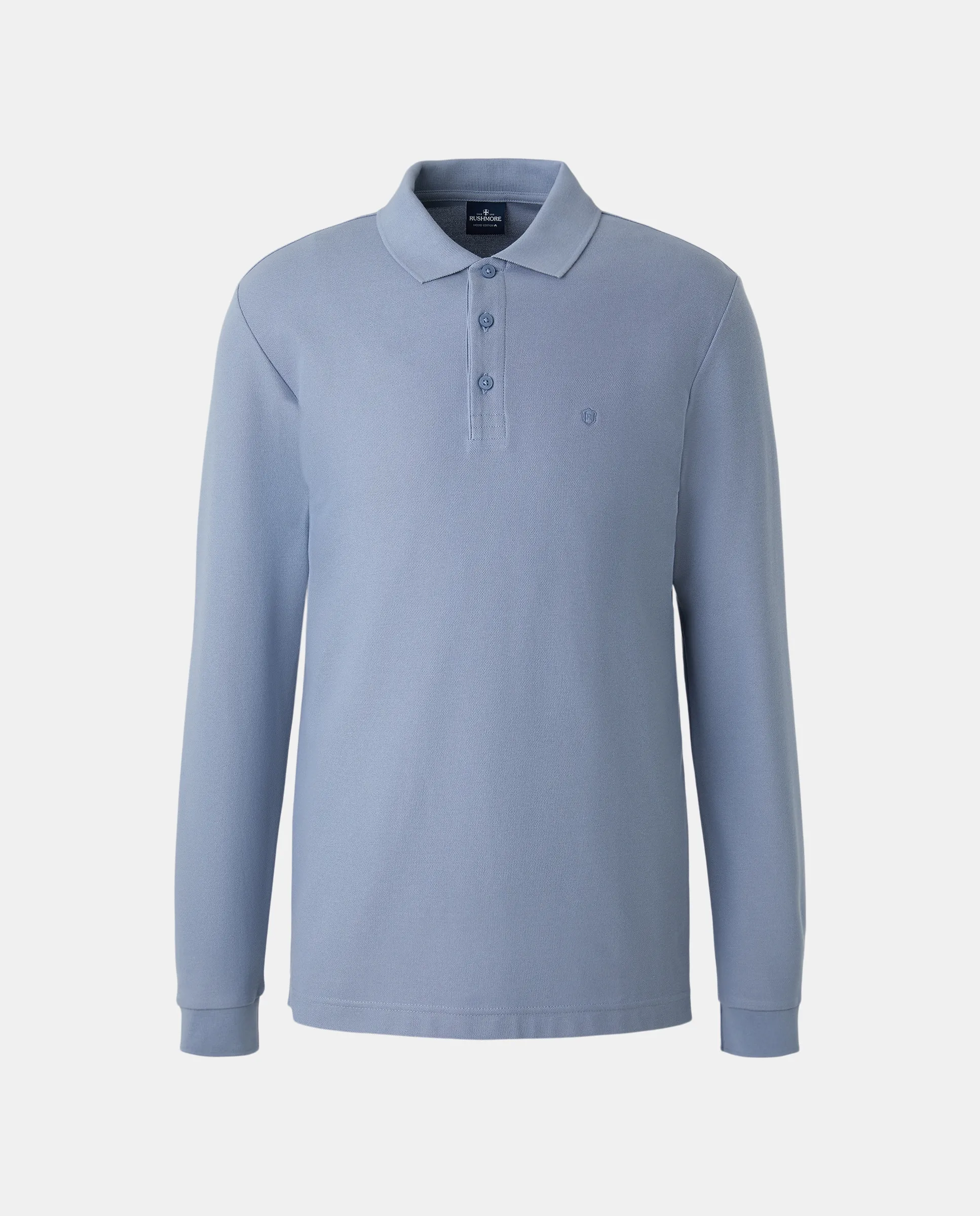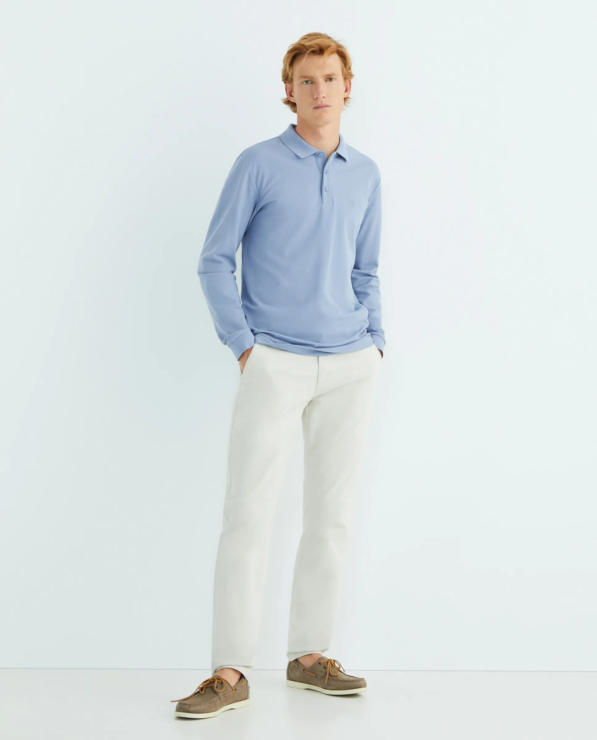 Поло с длинным рукавом жаккард, обычная посадка, 100% хлопок с отделкой liquid cotton, однотонное, очень мягкое на ощупь