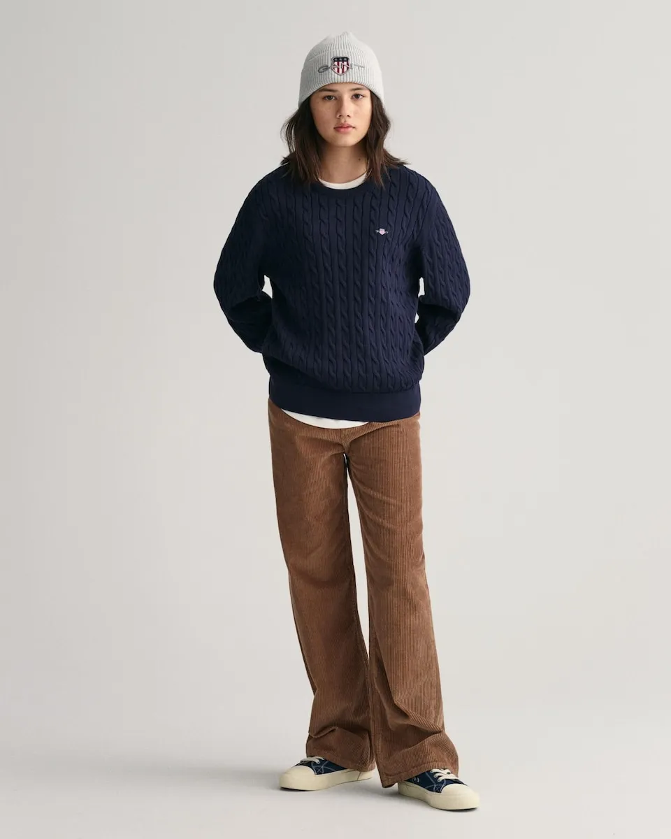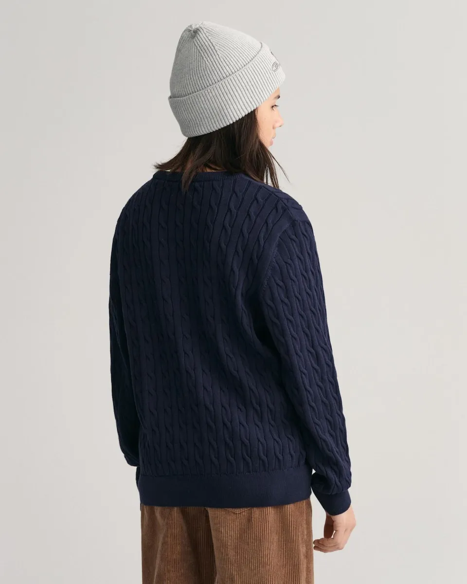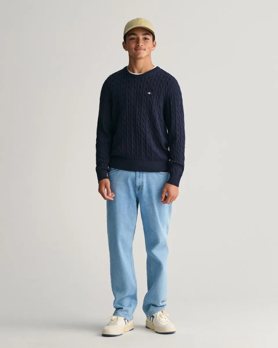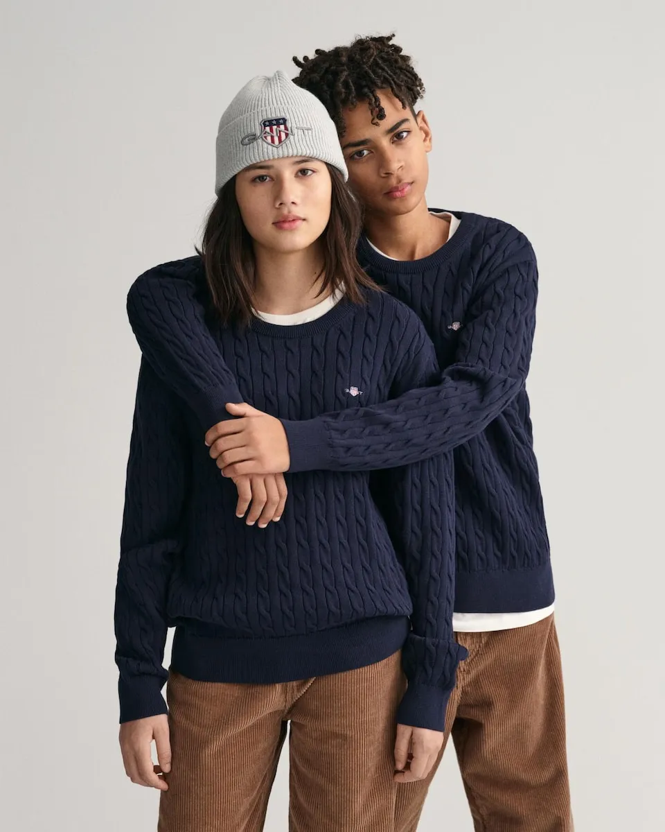 Сделанный в конструкции с полной кабельной петлёй, этот свитер GANT является вневременным изделием. Сшитый вручную из мягкого и дышащего хлопка, что делает его идеальным элементом для многослойного образа, этот свитер имеет круглый вырез, подол и манжеты с резинкой, а также небольшую вышитую графику щита GANT на груди. Выбирая наши хлопковые изделия, вы поддерживаете инвестиции GANT в миссию Better Cotton. Этот продукт получен через систему балансировки массы, поэтому он может не содержать Better Cotton. Узнайте больше на bettercotton.org/massbalance.