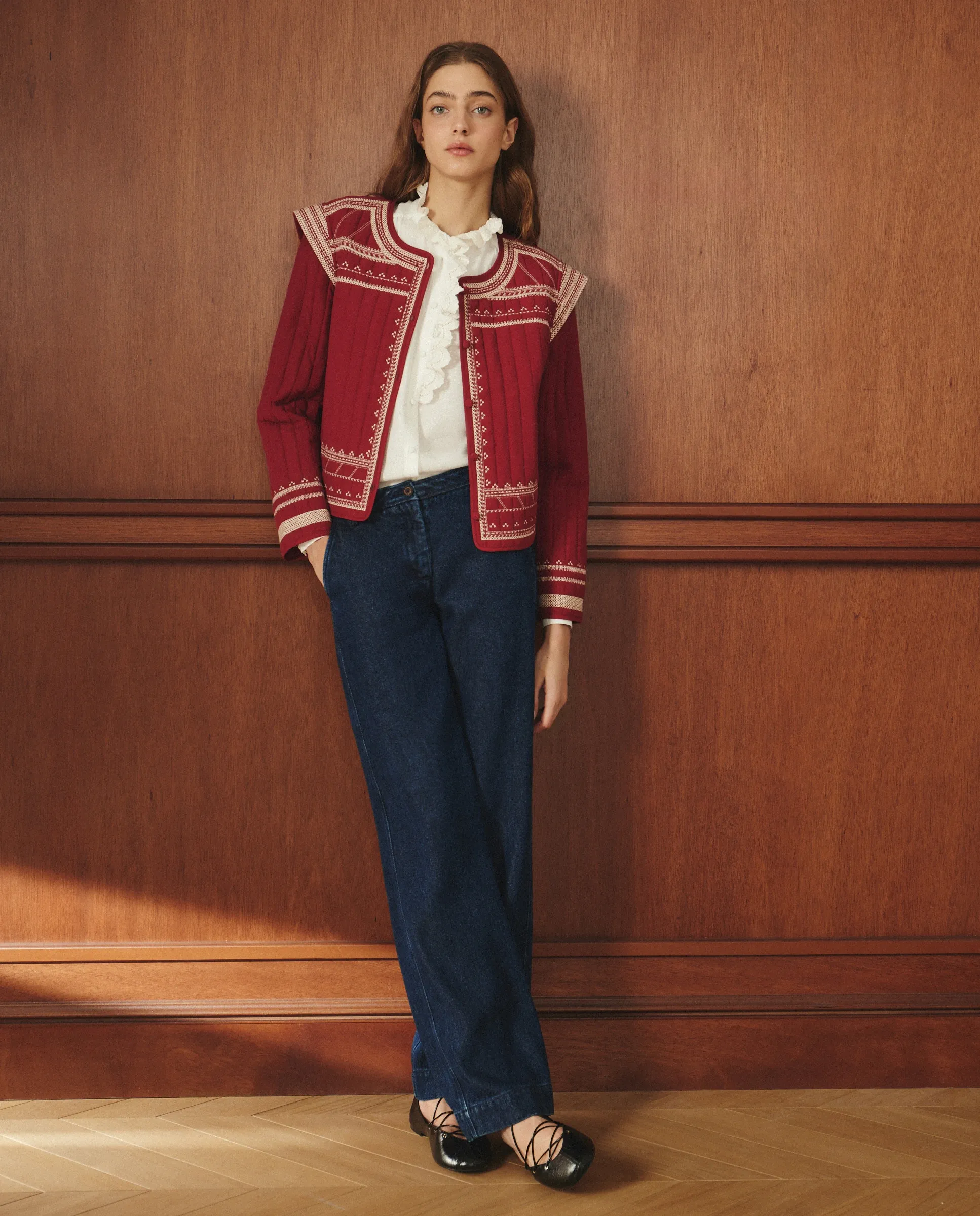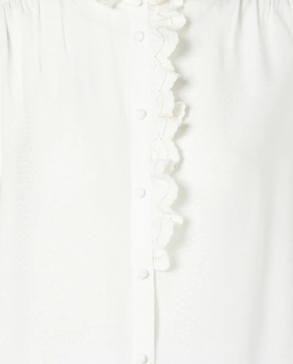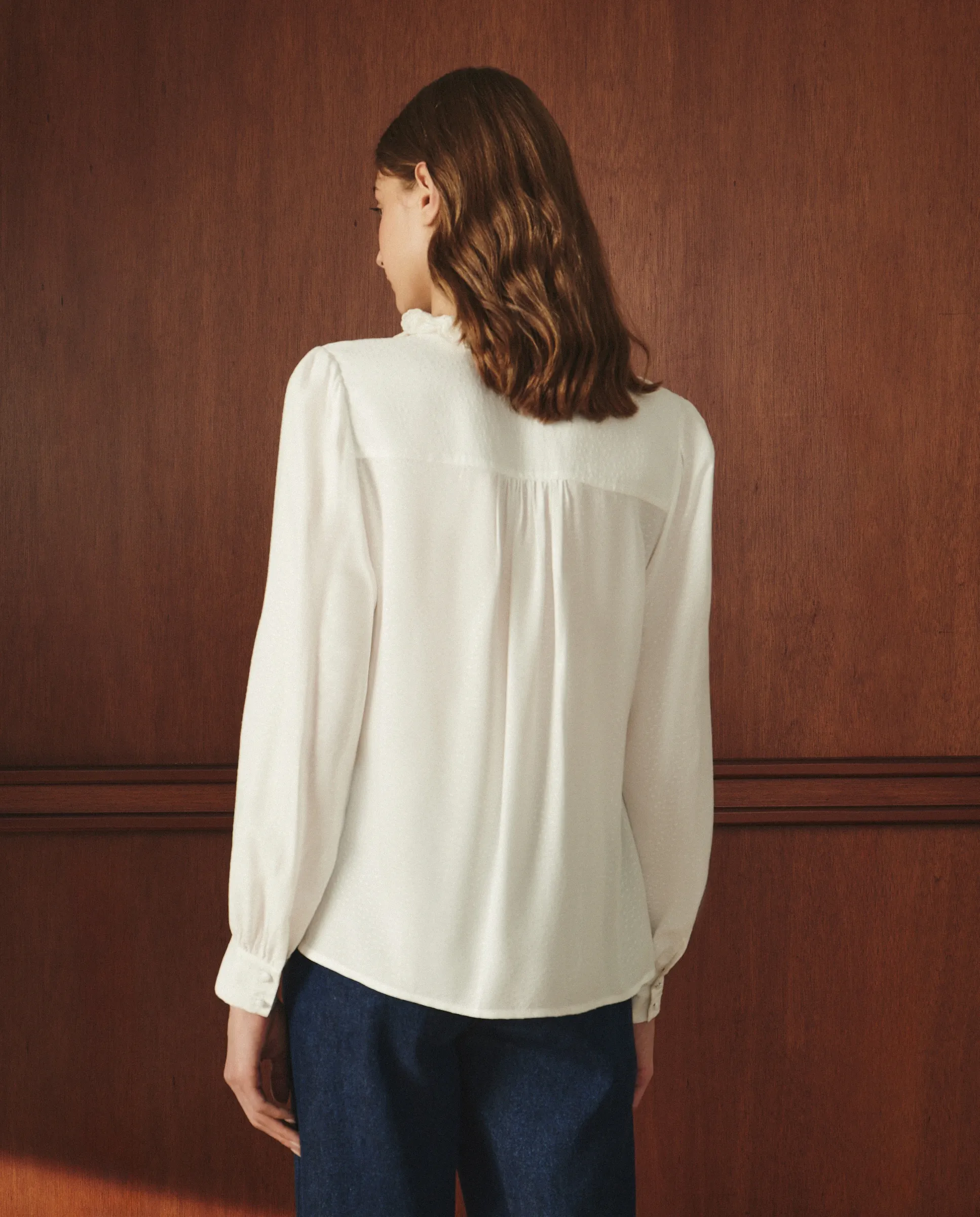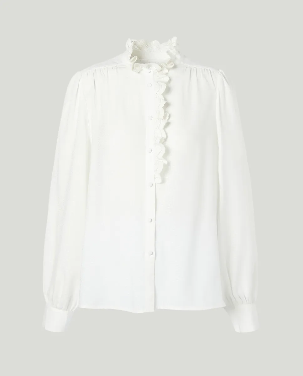 Однотонная блуза с длинными рукавами и вышитой оборкой.