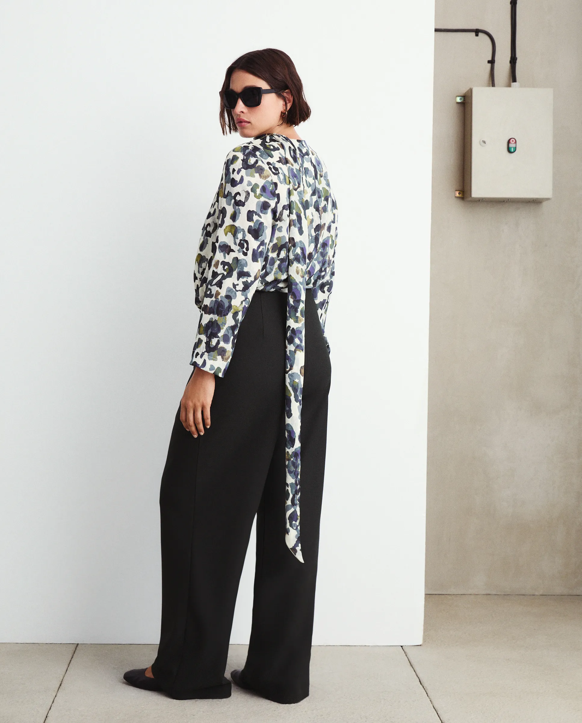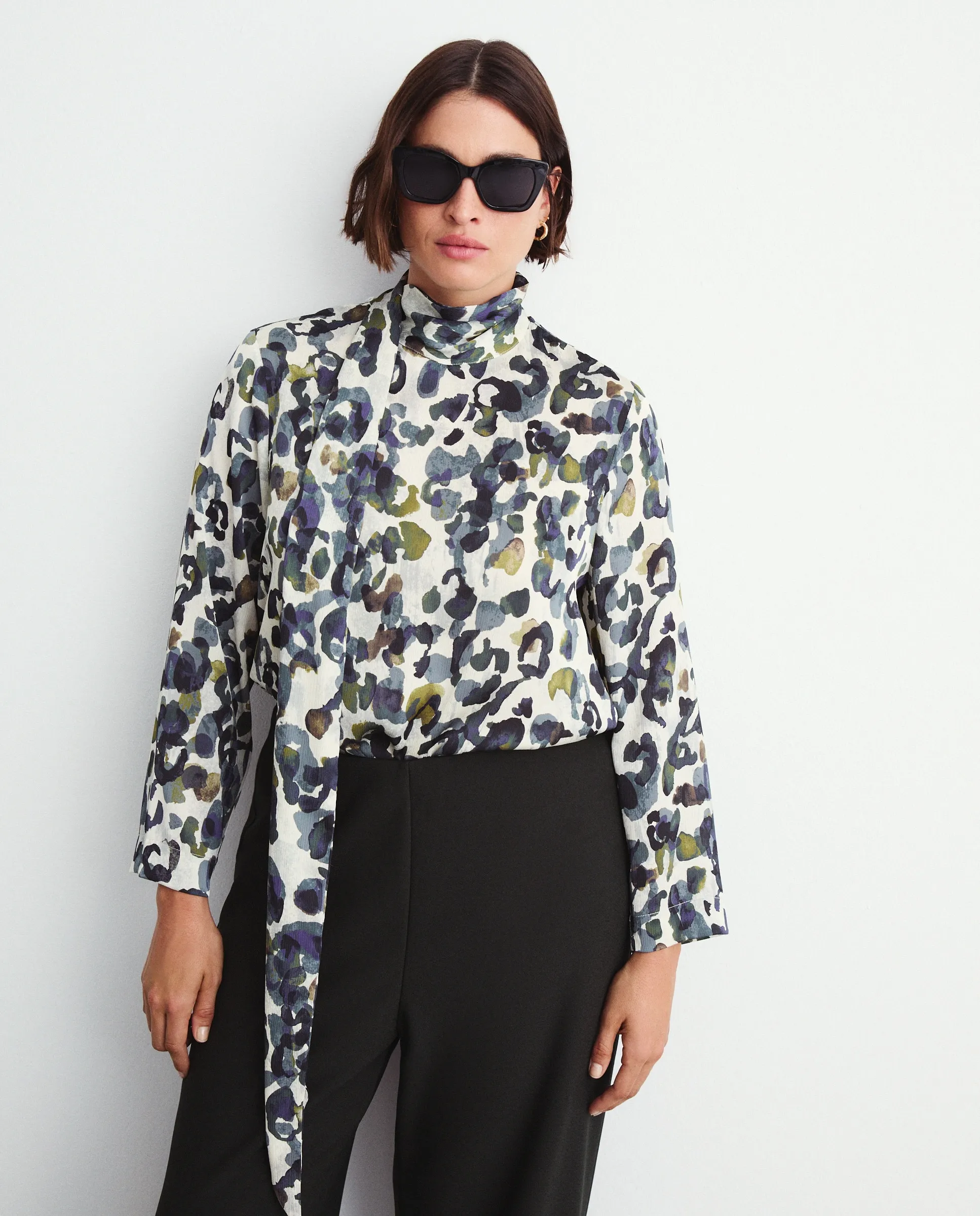 Рубашка с длинным рукавом с принтом и бантом.