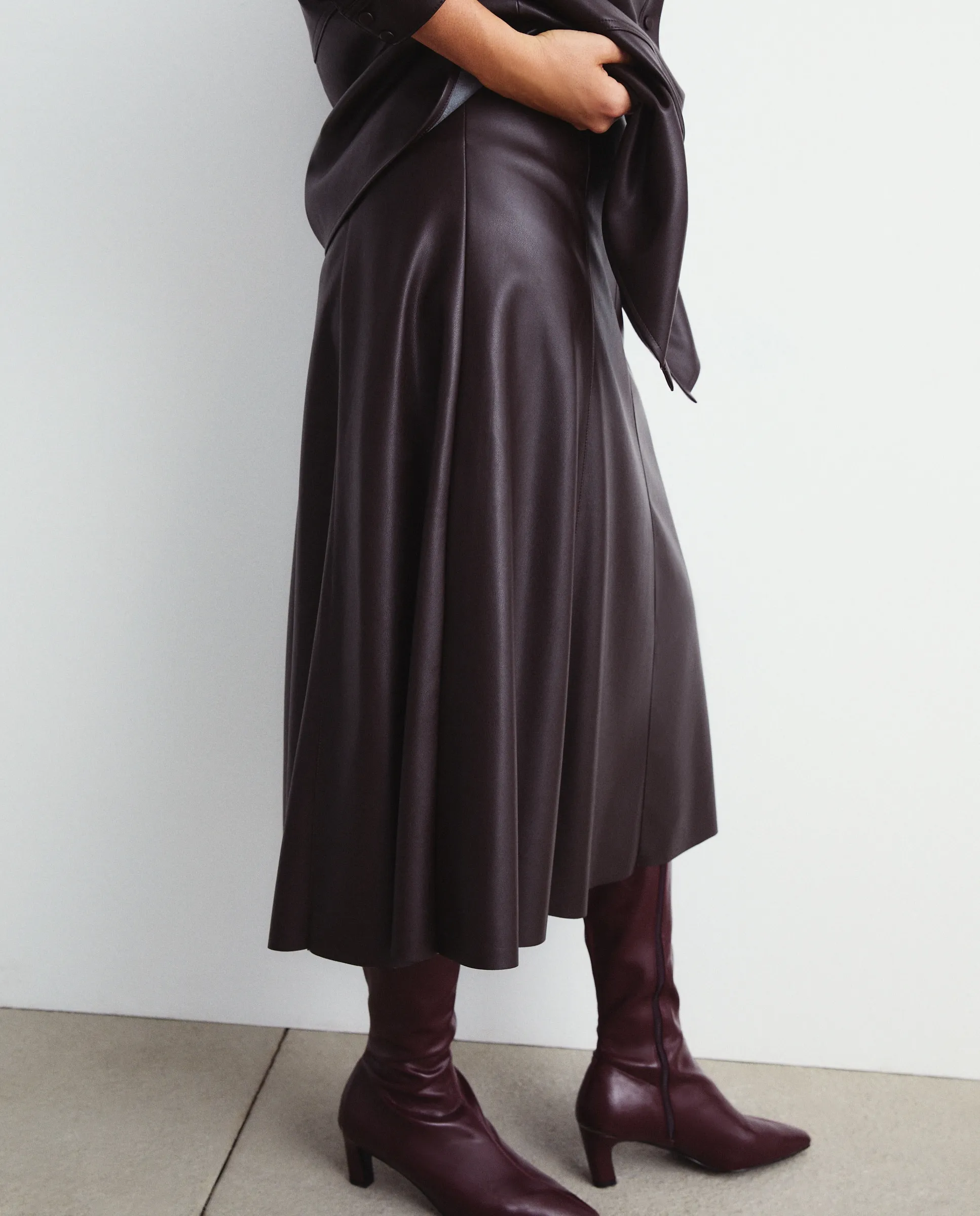 Миди-юбка однотонная с эффектом кожи.