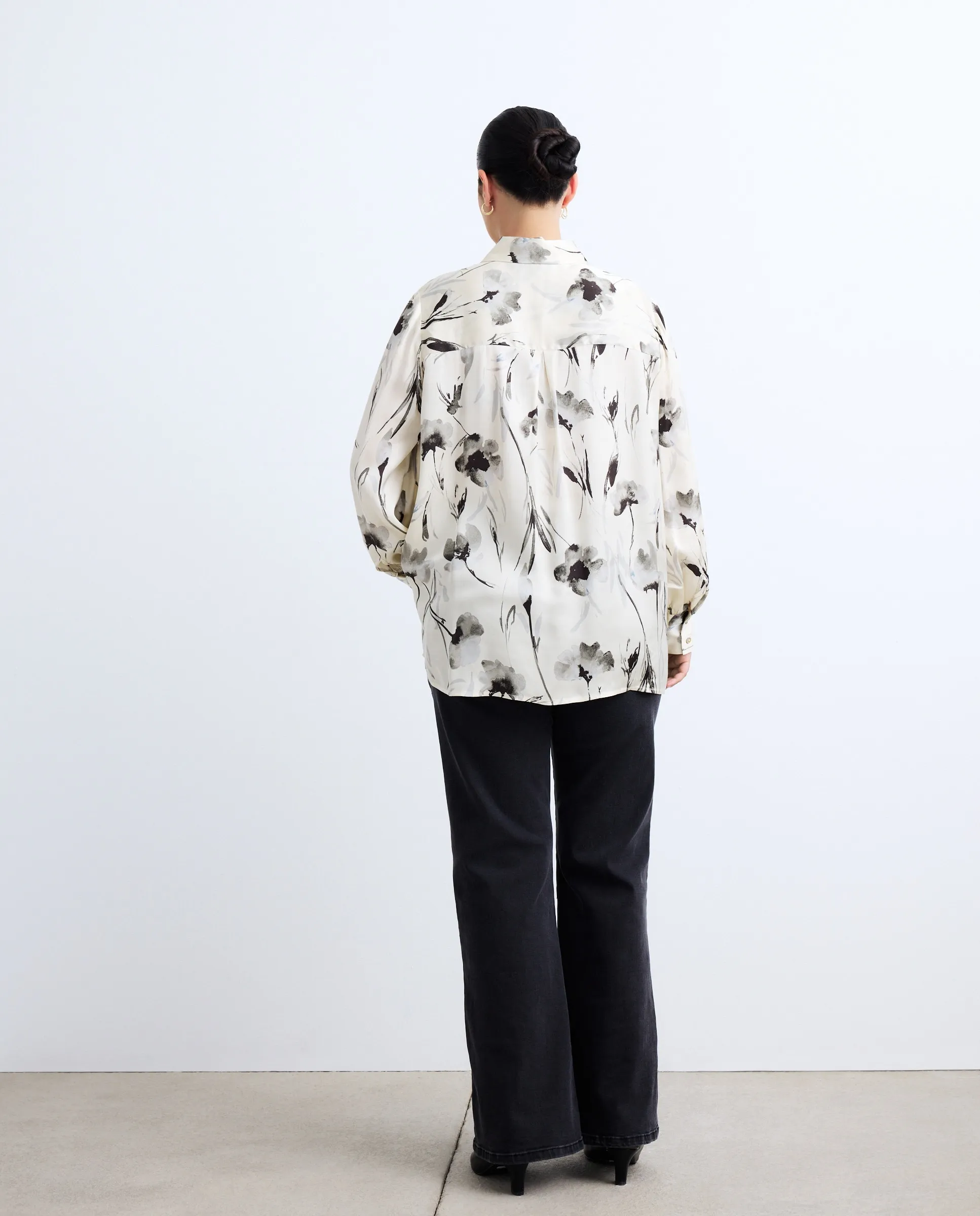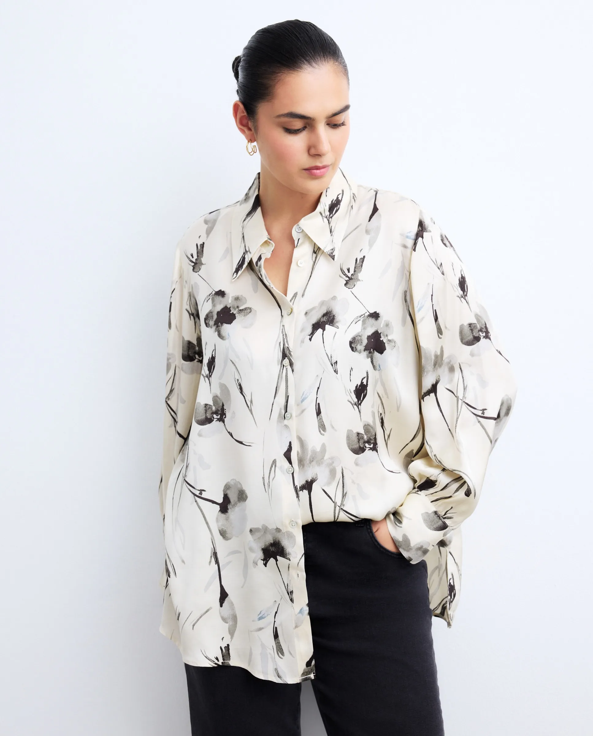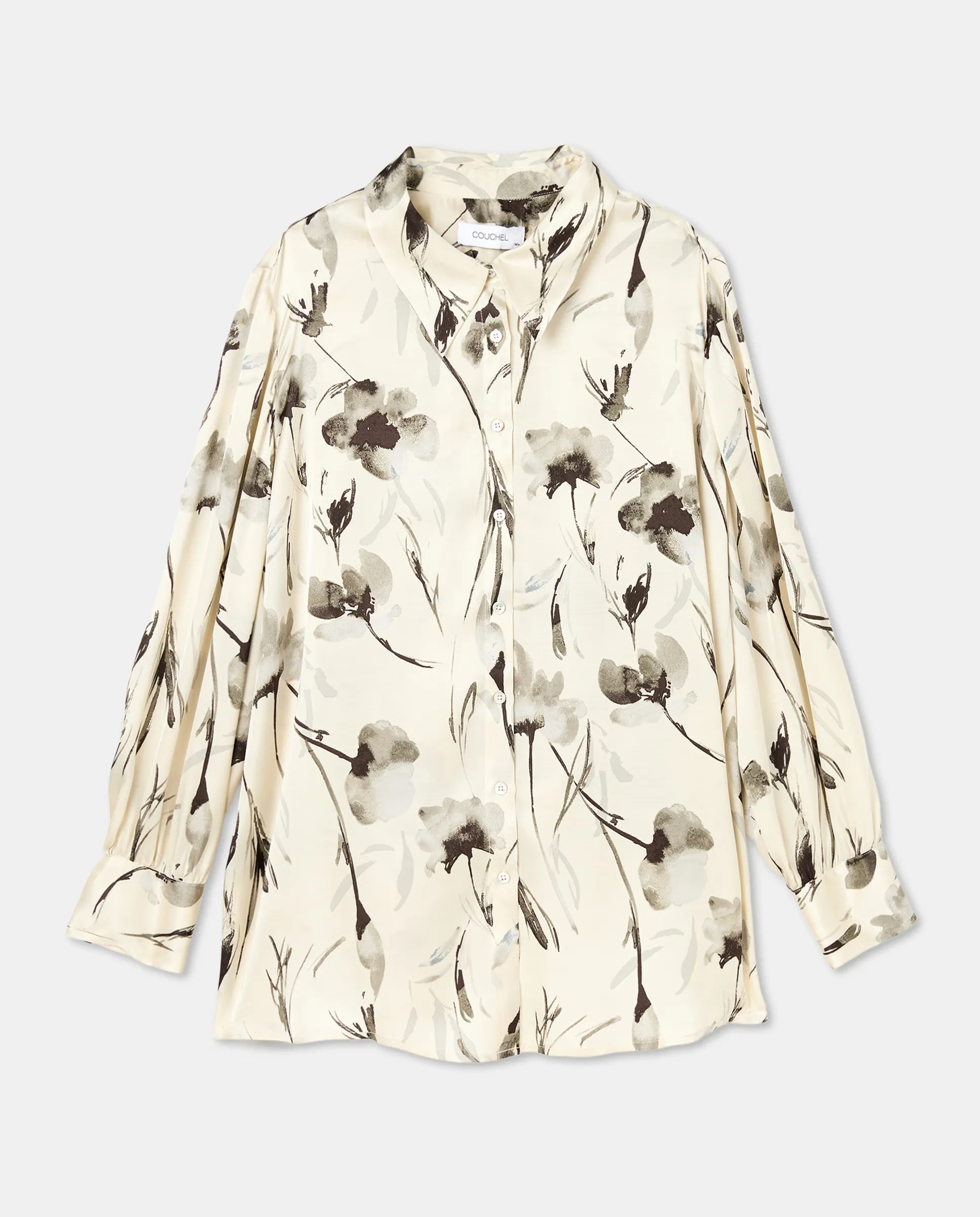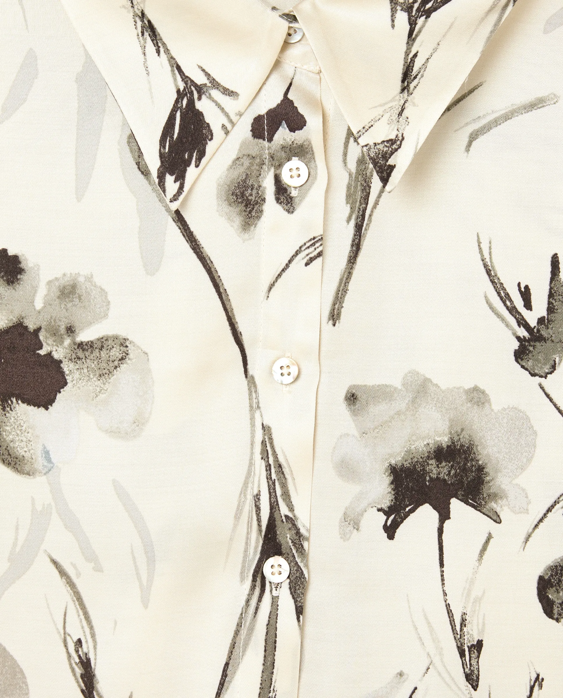 Сатиновая рубашка с длинными рукавами и цветочным принтом.