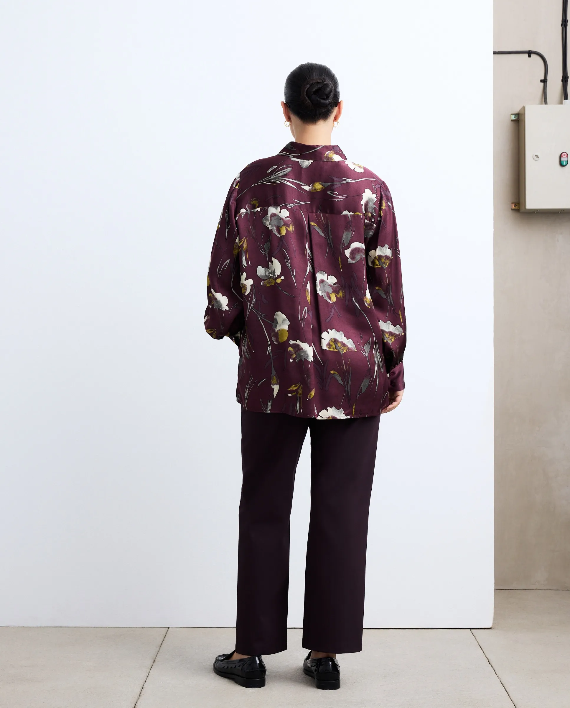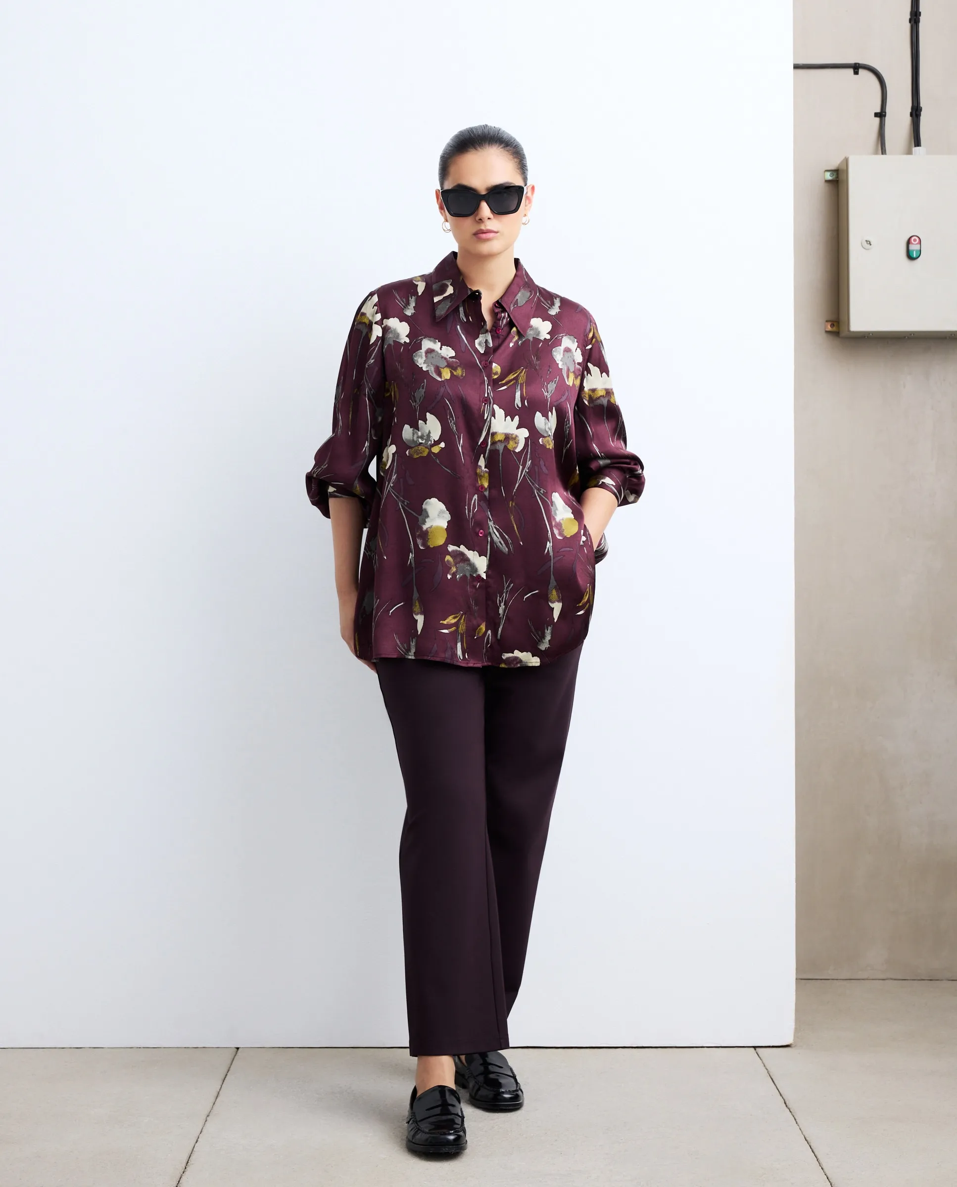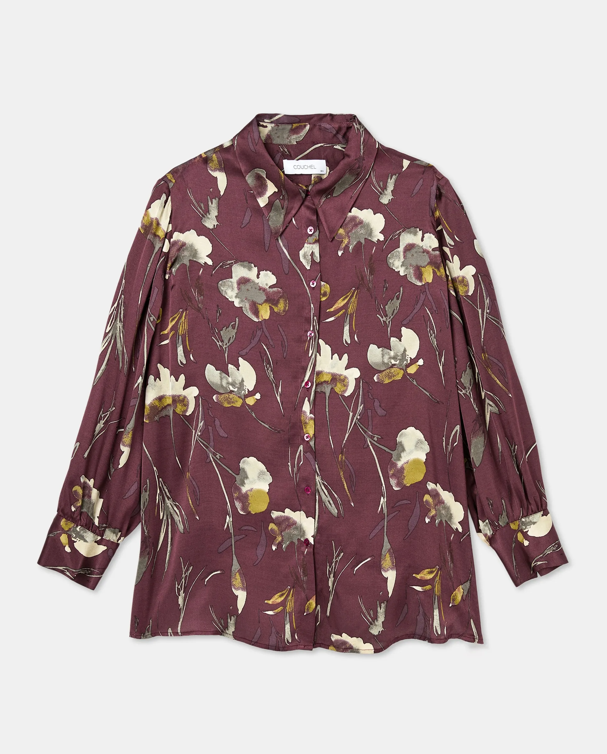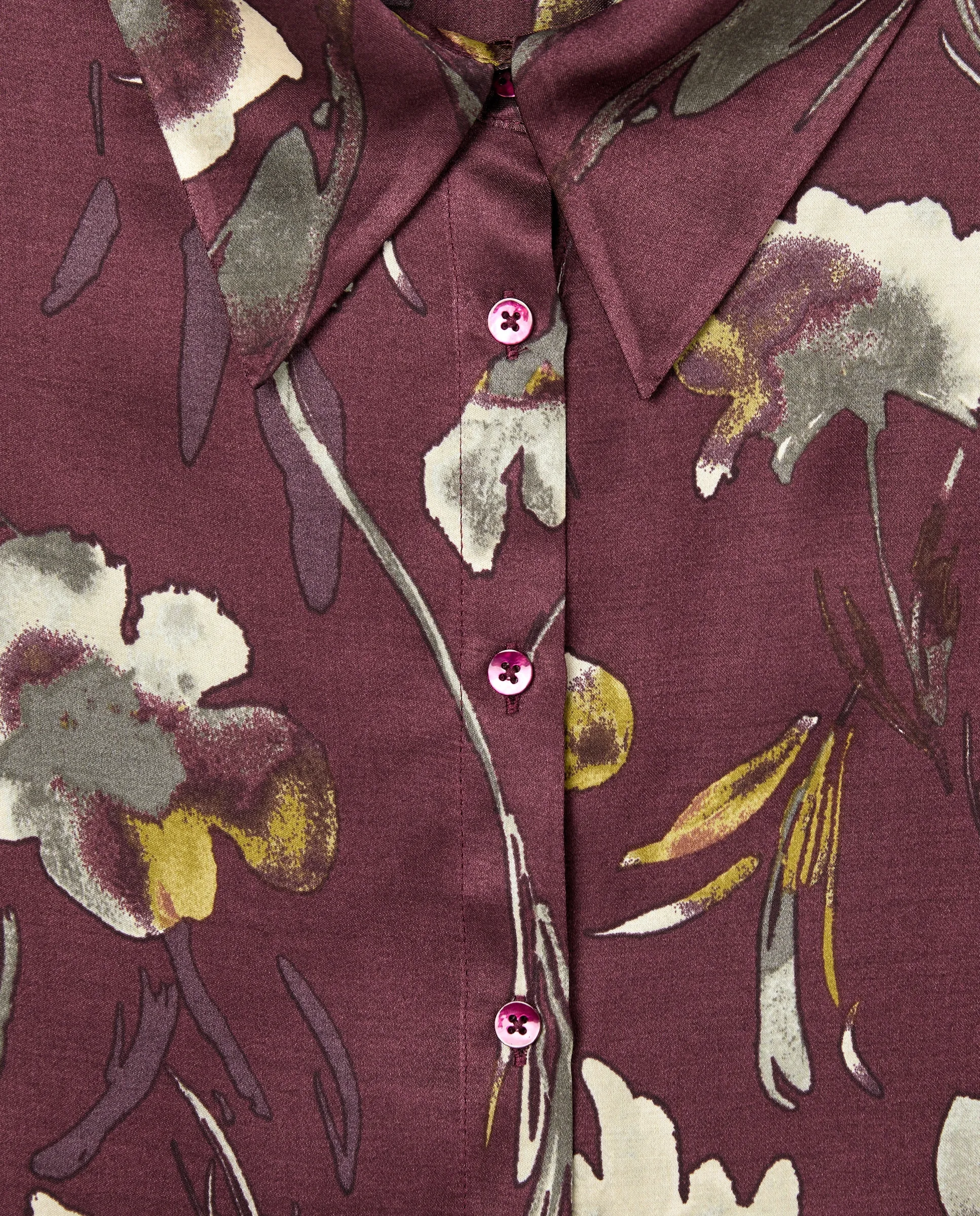Сатиновая рубашка с длинными рукавами и цветочным принтом.