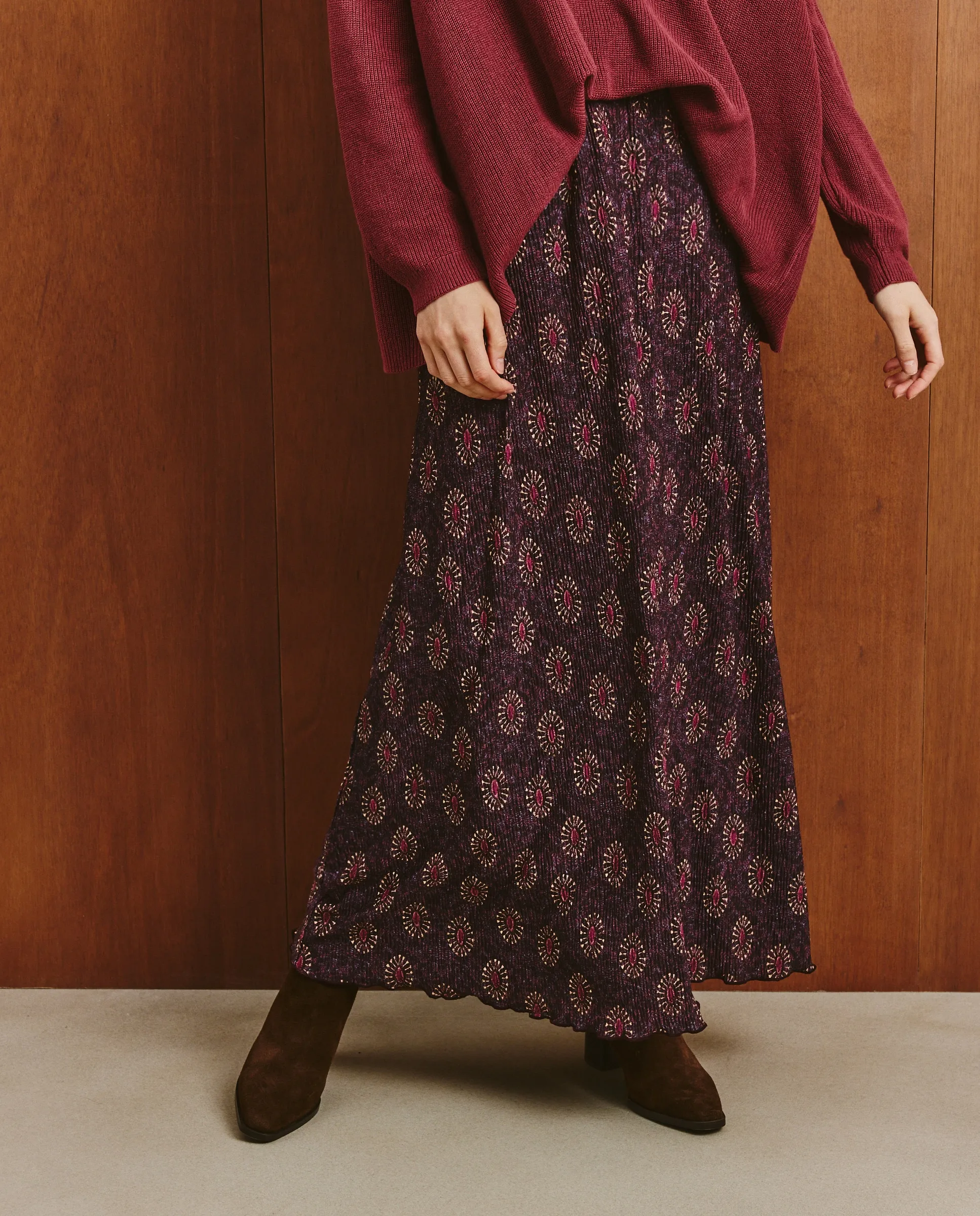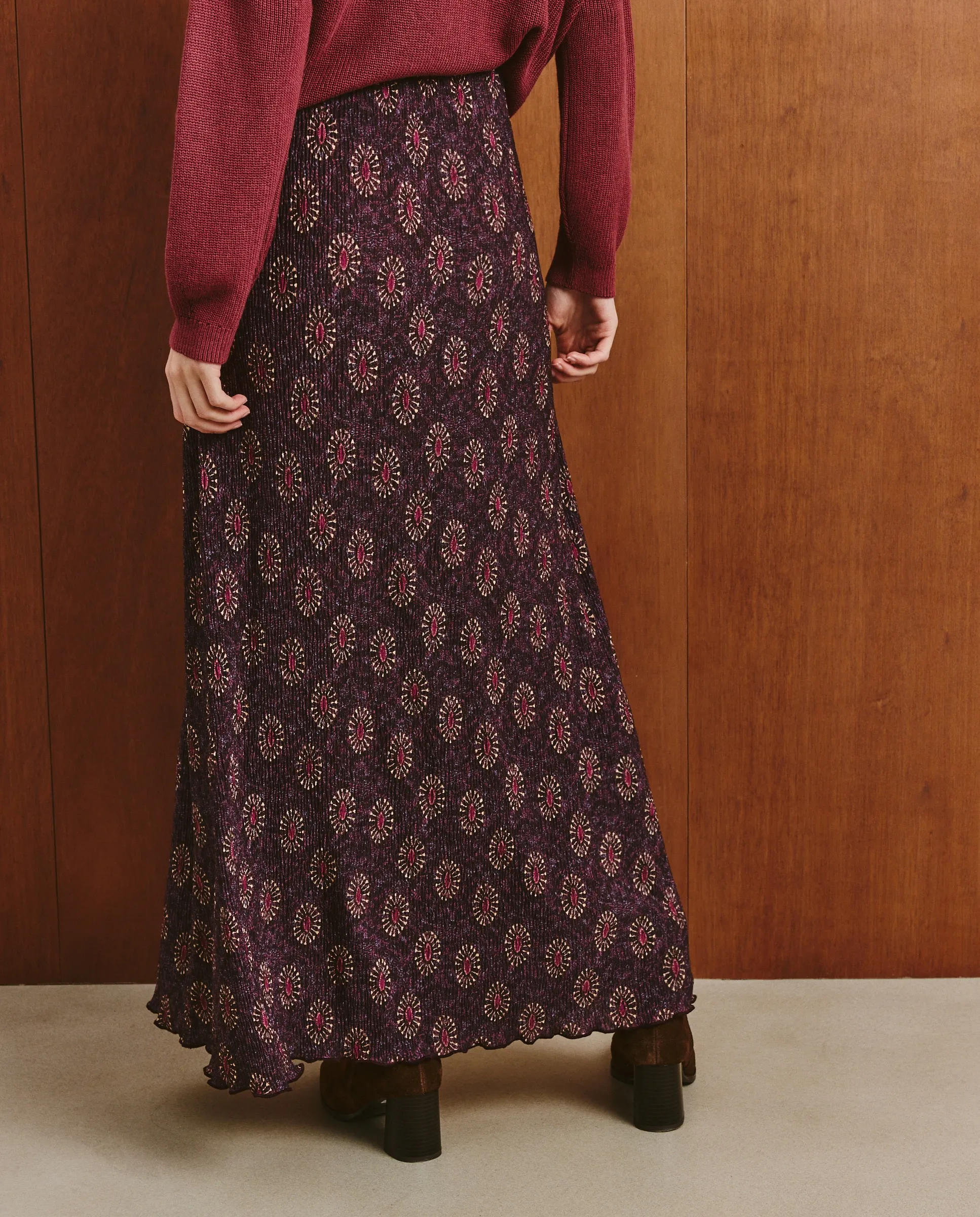 Длинная трикотажная юбка с цветочным принтом.