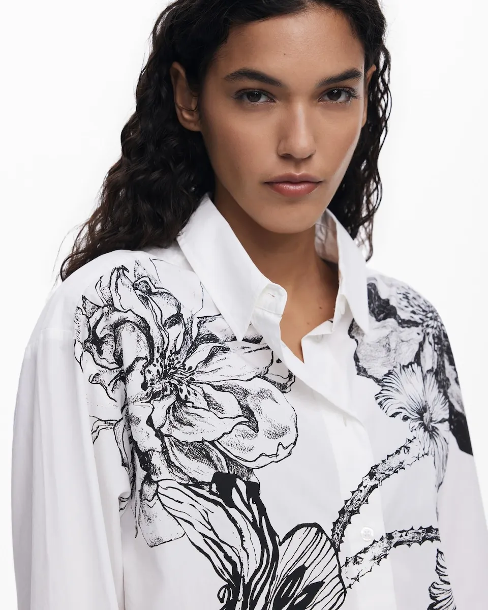 Рубашка оверсайз с длинным рукавом и цветочным принтом, разработанная Месье Кристианом Лакруа. Цветочный принт. Крой: оверсайз. Рукав: длинный. Передняя застежка на пуговицы. При покупке хлопковых изделий Desigual вы поддерживаете нашу инвестицию в Better Cotton. Этот продукт получен через систему массового баланса и может не содержать Better Cotton. bettercotton.org/massbalance.