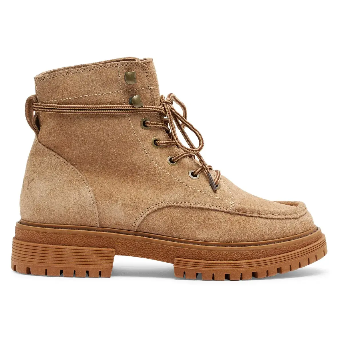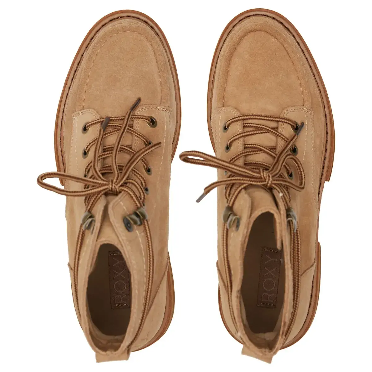 Женские ботинки. Характеристики включают: Верх: высококачественная замша, детали верха: классическая конструкция с самоклеящейся носочной и пятковой частью для удобства надевания, шнурки в стиле треккинга, внутренняя часть из PU с мемори-фоами, прочный и устойчивый TPR с имитацией отделки и логотипом Roxy., Упаковка: коробка, высота каблука: 40 мм.