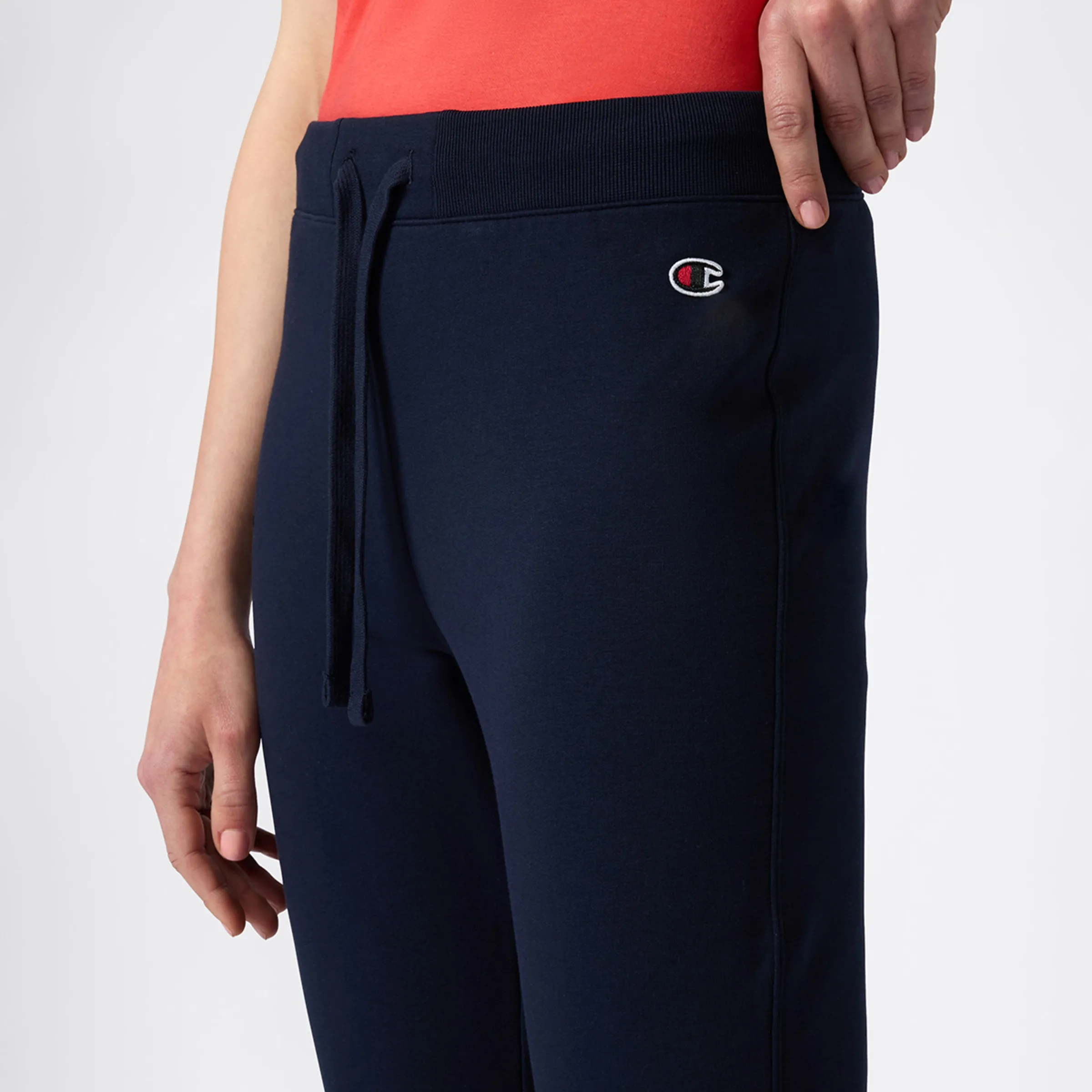 Классические спортивные брюки Champion с манжетами. Эластичный пояс с шнурком, боковые карманы, эластичные манжеты и небольшой вышитый логотип. Из хлопкового флиса с добавлением эластана 'стрейч', являются основным элементом для сочетания в ваших зимних активностях.