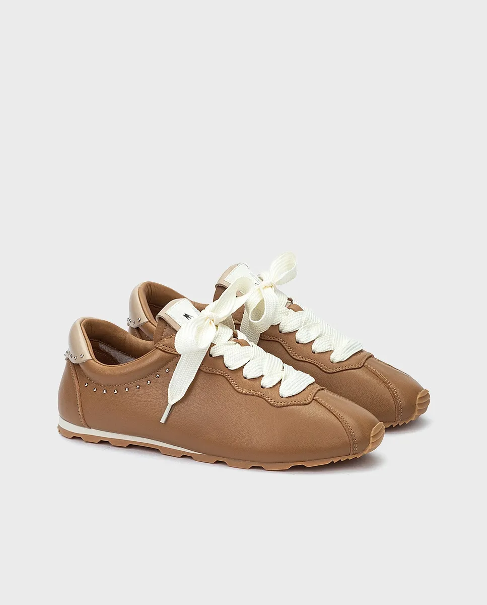Спортивная балетка Piemonte. Изготовлена из 100% кожи, с круглым носком и подошвой. Декорирована заклепками. Застежка на шнурках. Ловите каждый день с New Elegance, актуальная элегантность и комфорт.