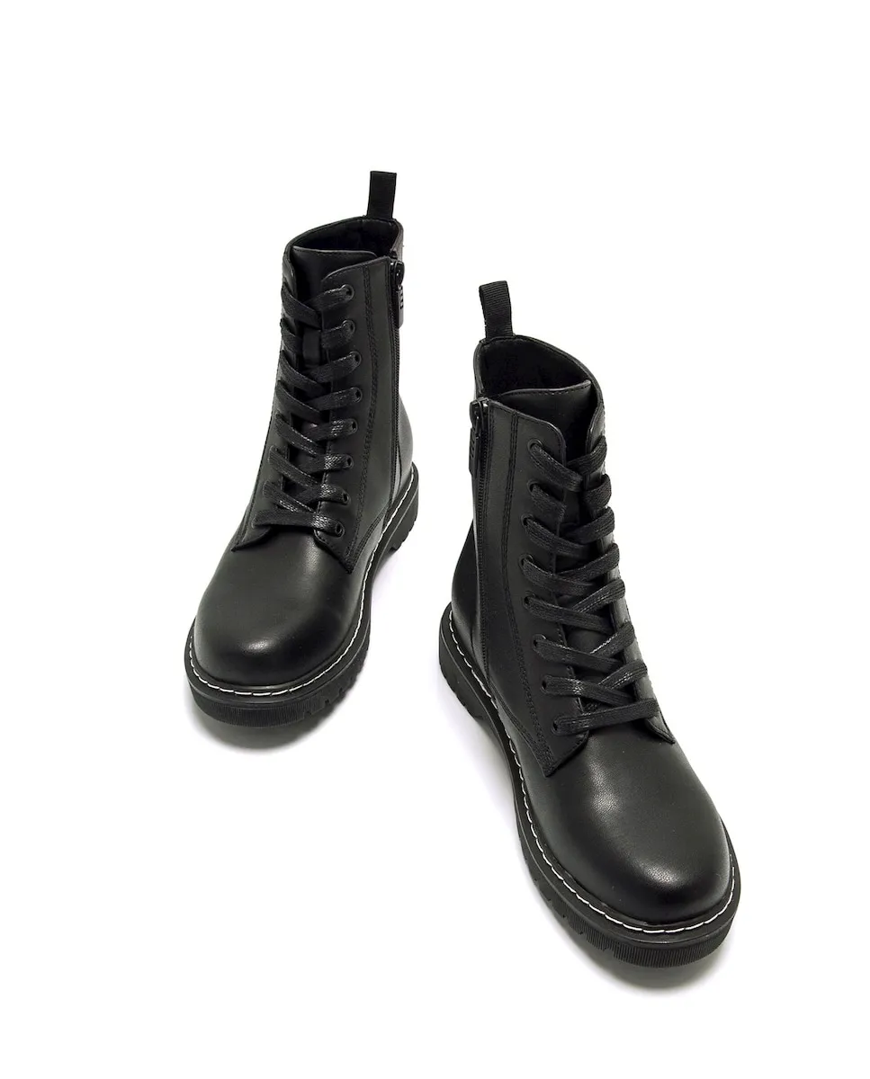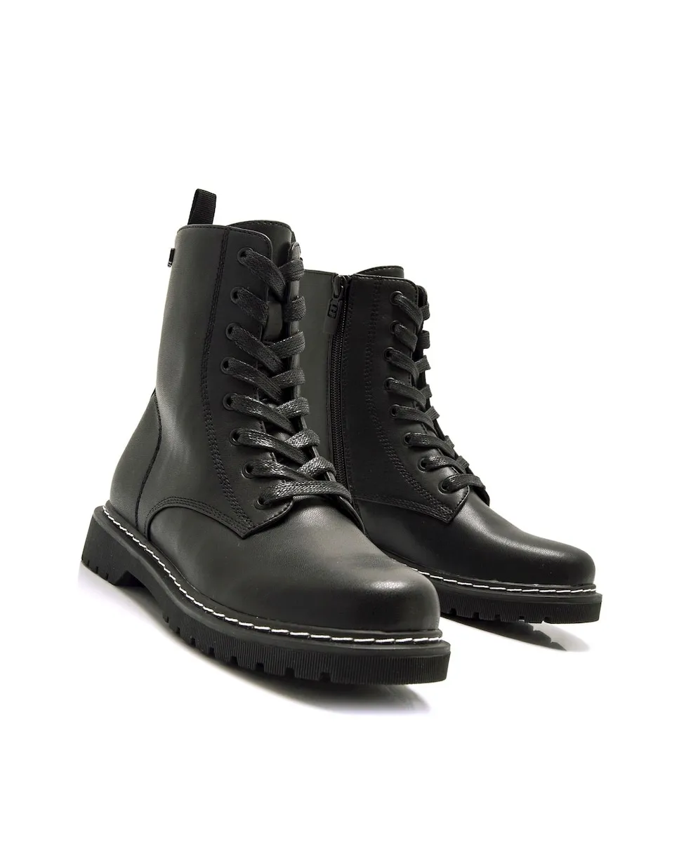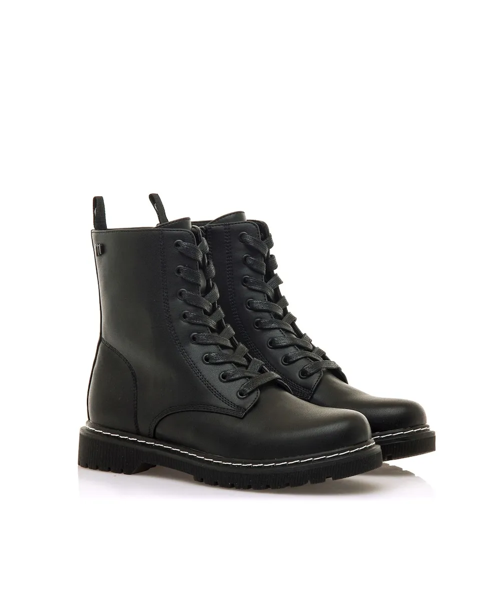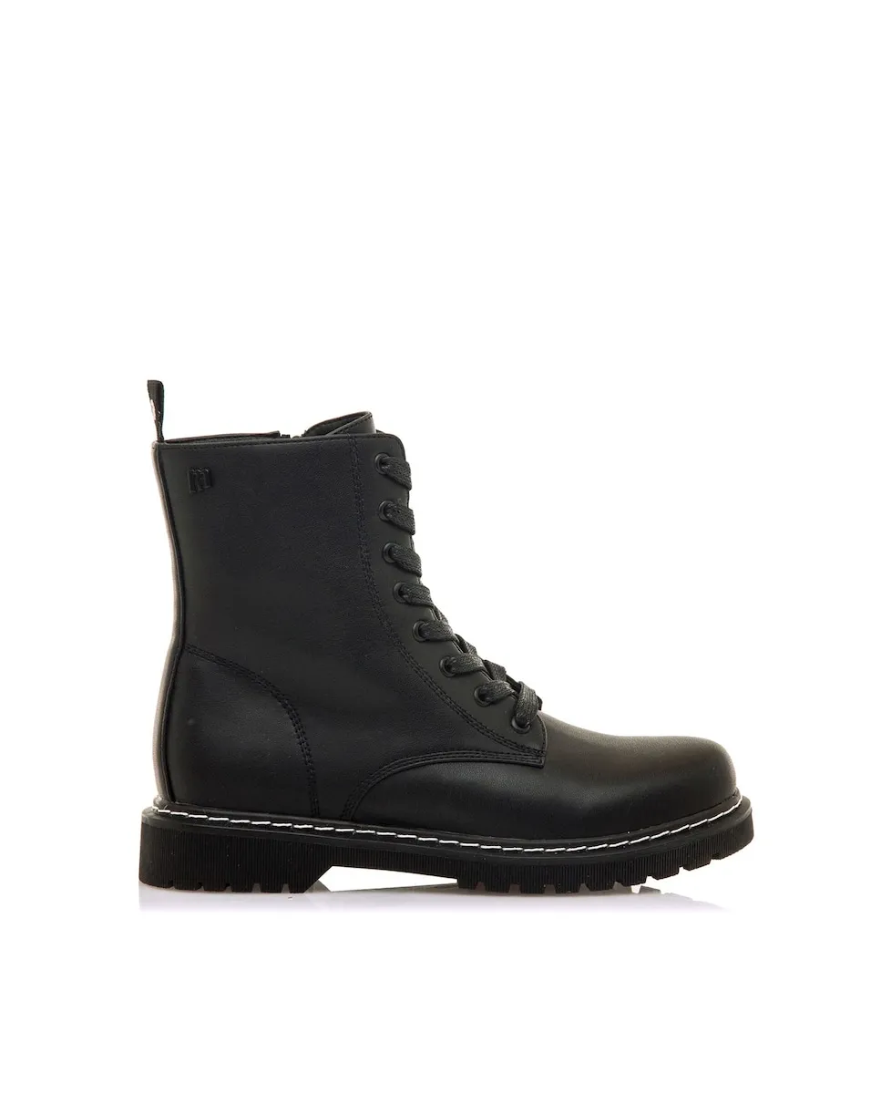 Женские ботинки модели Storm в милитаристском стиле от бренда Mtng. Этот дизайн включает военный крой с шнуровкой спереди, дополненный внутренней молнией и задним язычком для удобства надевания. Толстая и зубчатая платформенная подошва добавляет урбанистический штрих и улучшает сцепление, в то время как декоративная белая строчка внизу создает привлекательный контраст. Идеально подходит для завершения кэжуал-образов с бунтарским и современным настроением.