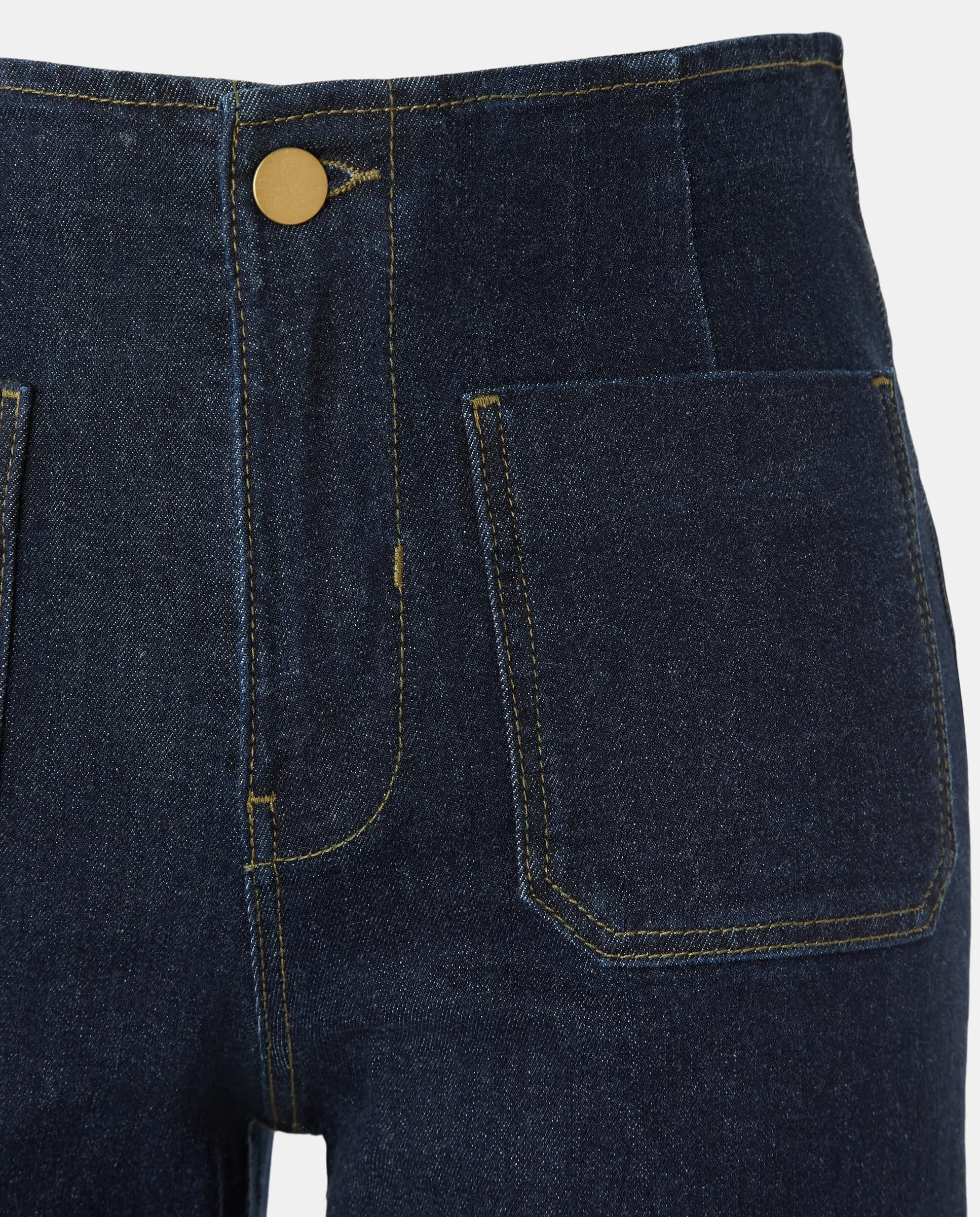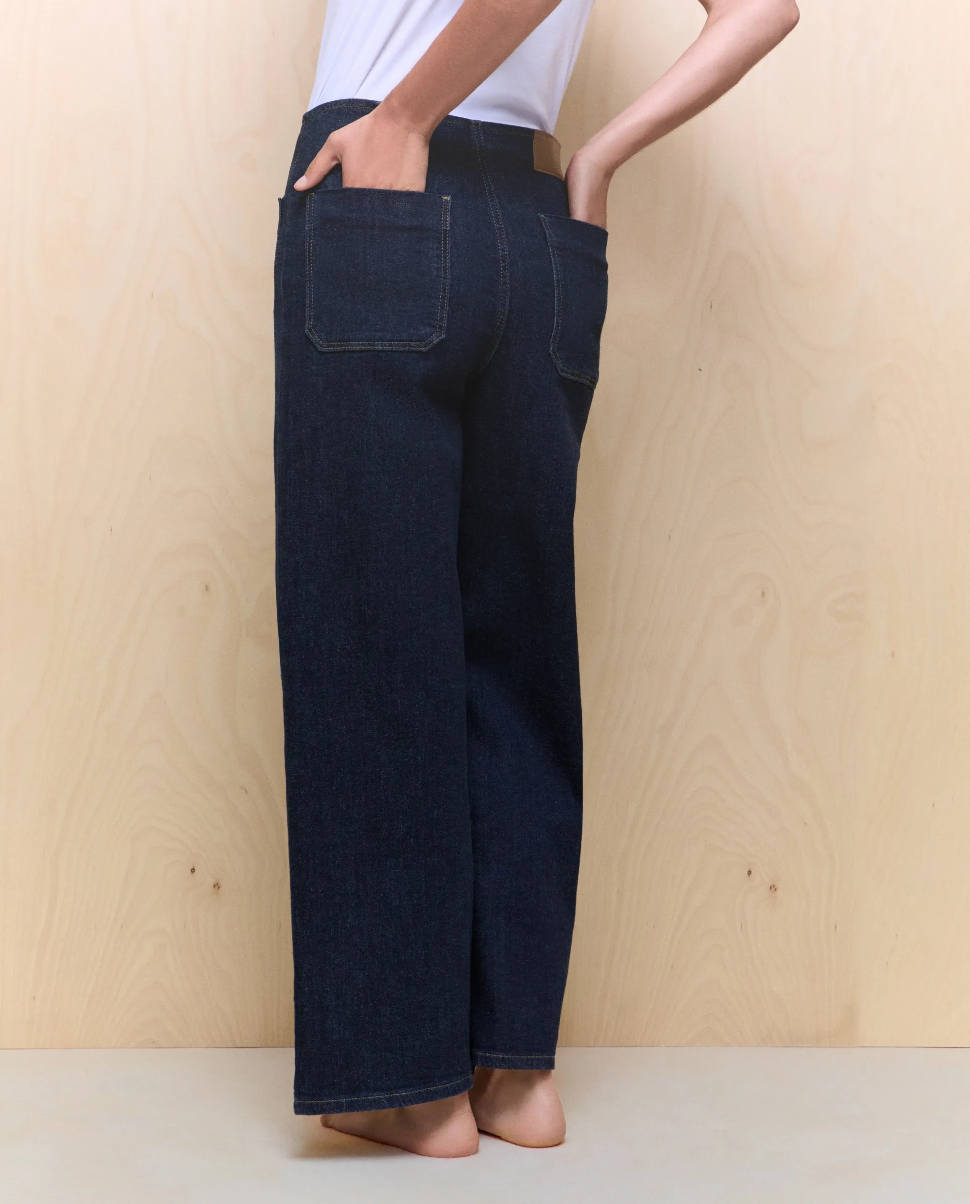 Джинсы с карманами на пуговицах спереди, выполненные из денима с содержанием хлопка и эластана для оптимального комфорта. Модель с широкими штанинами без пояса и высокой посадкой. Укороченная длина, открывающая лодыжку. Стирка выполнена с использованием технологий, позволяющих экономить энергию и воду на всех этапах производства. Хлопок BCI.