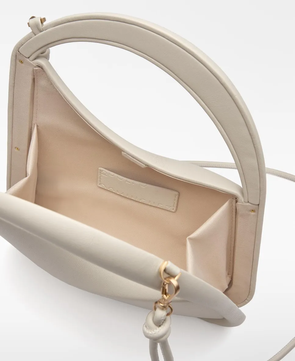 Коктейльная сумочка из переработанного полиэстера. Имеет жесткую конструкцию, один отсек, магнитную застежку, короткую трубчатую ручку и съемную длинную ручку. Высота x Ширина x Глубина: 26 x 2 x 24 см