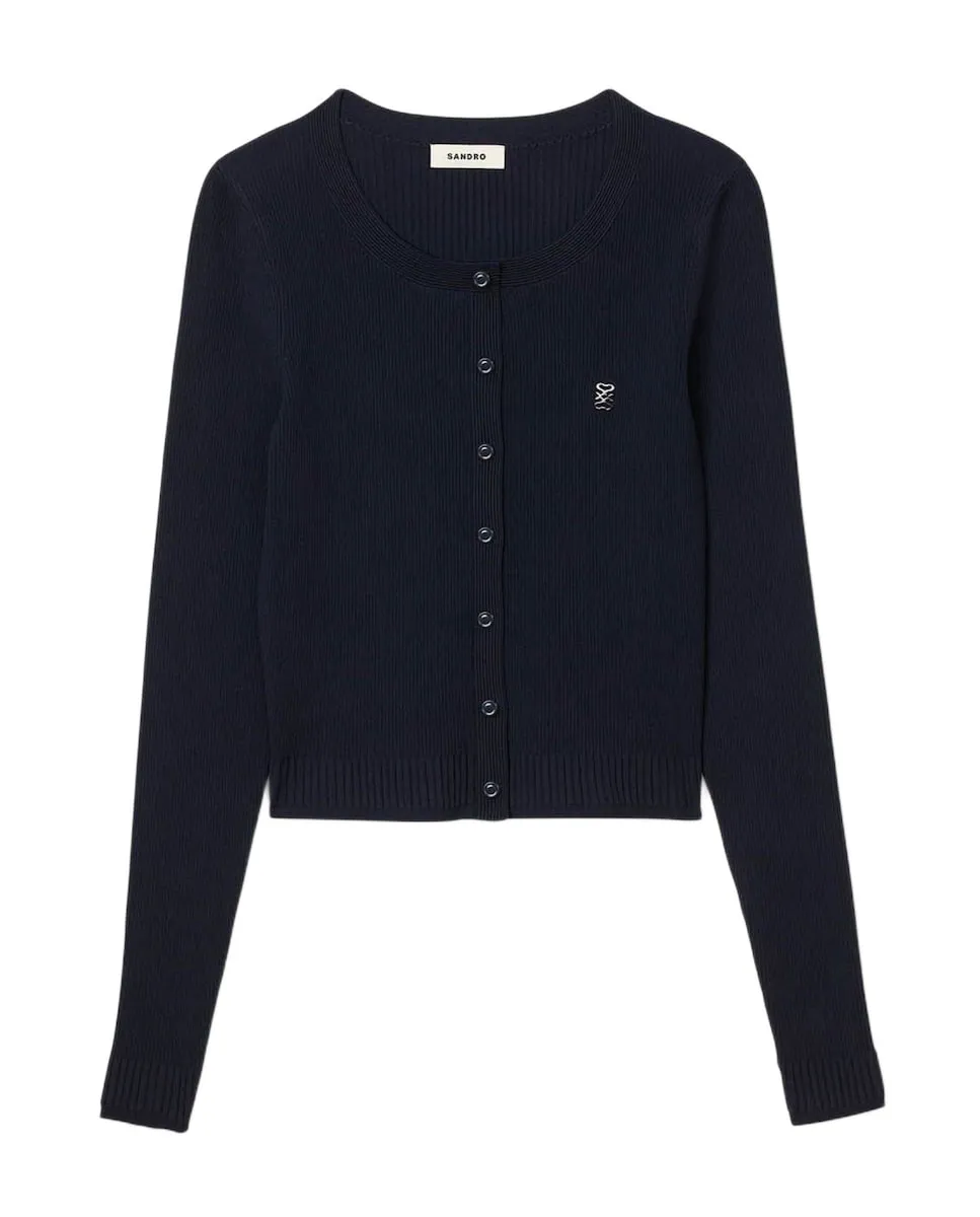 Женский кардиган из тонкой пряжи Sandro, темно-синий