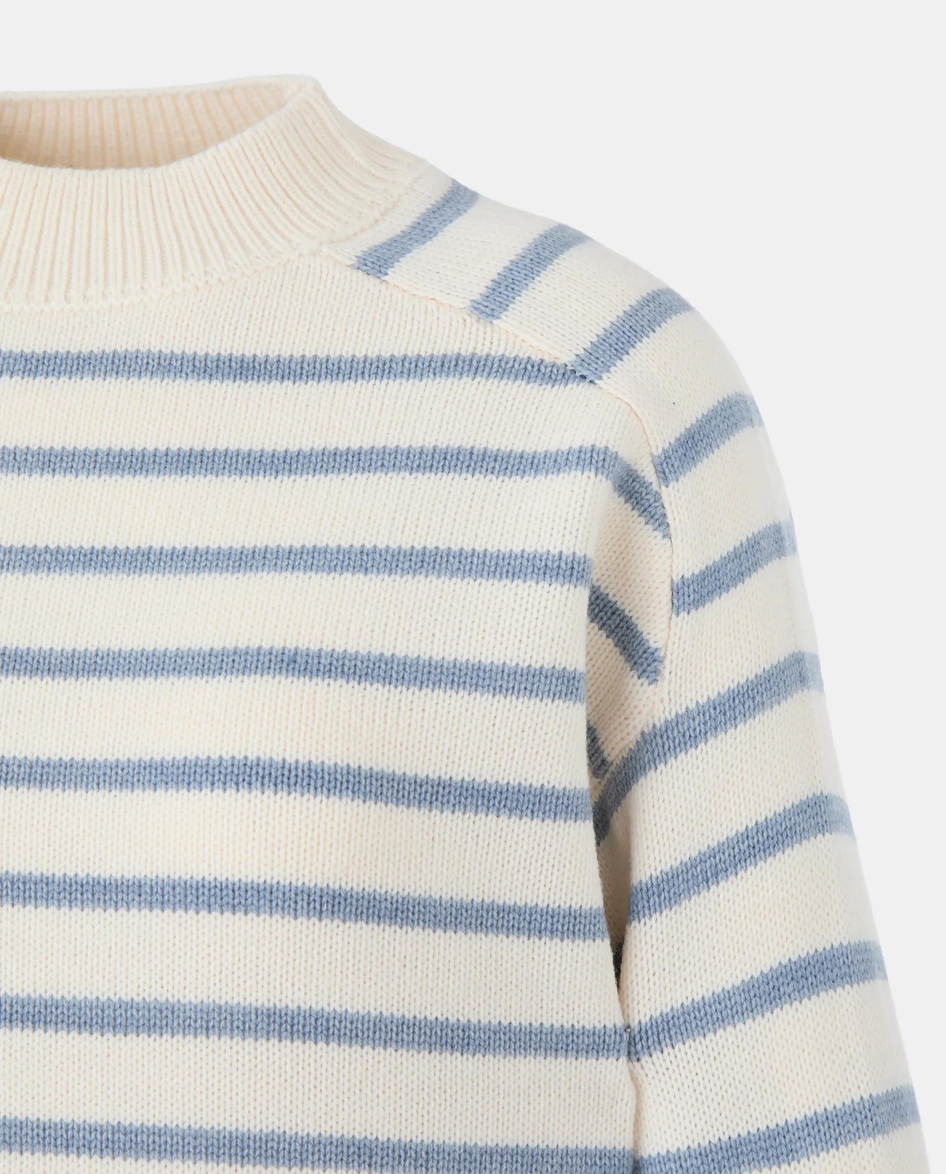 Джемпер с круглым вырезом и полосатым рисунком.