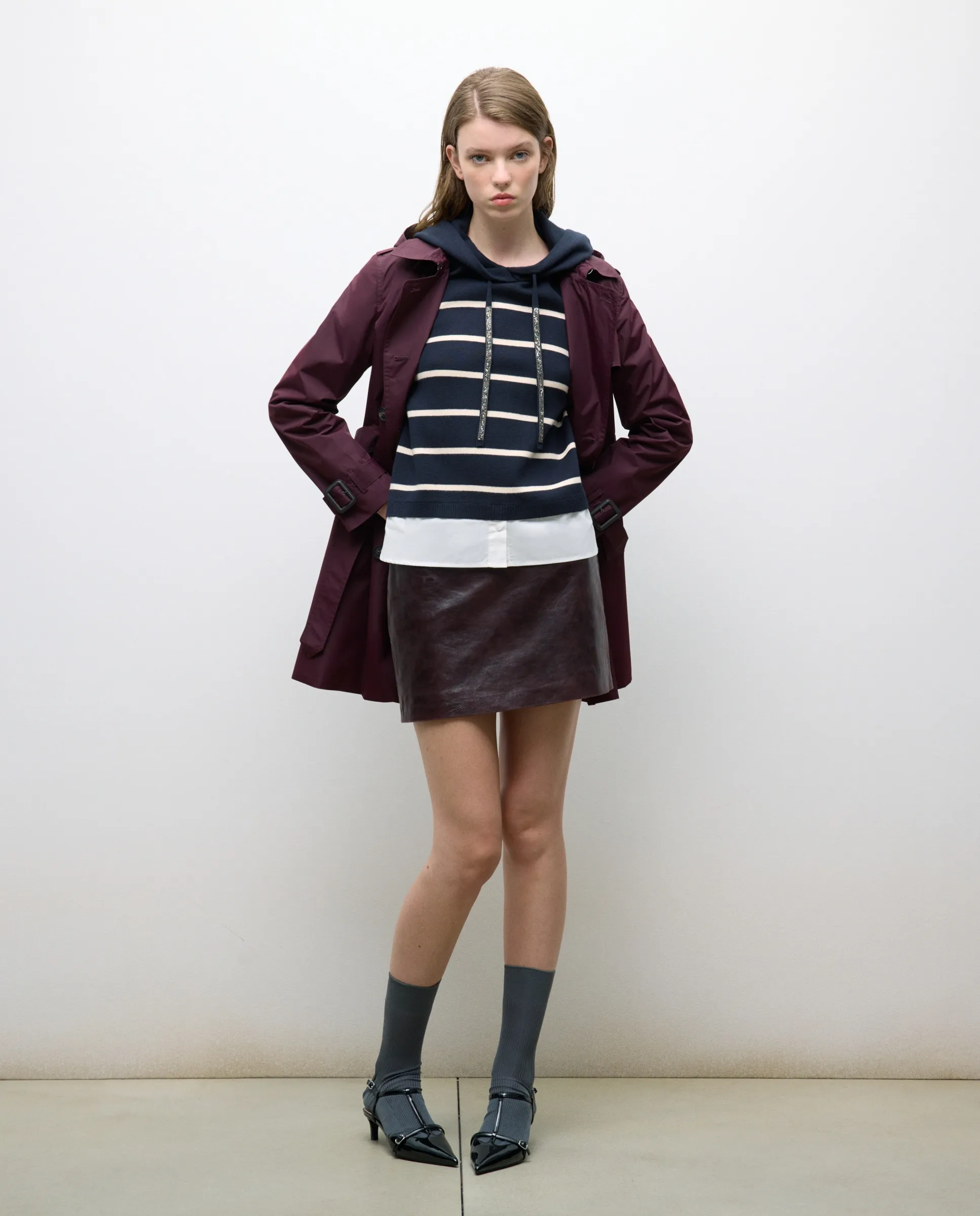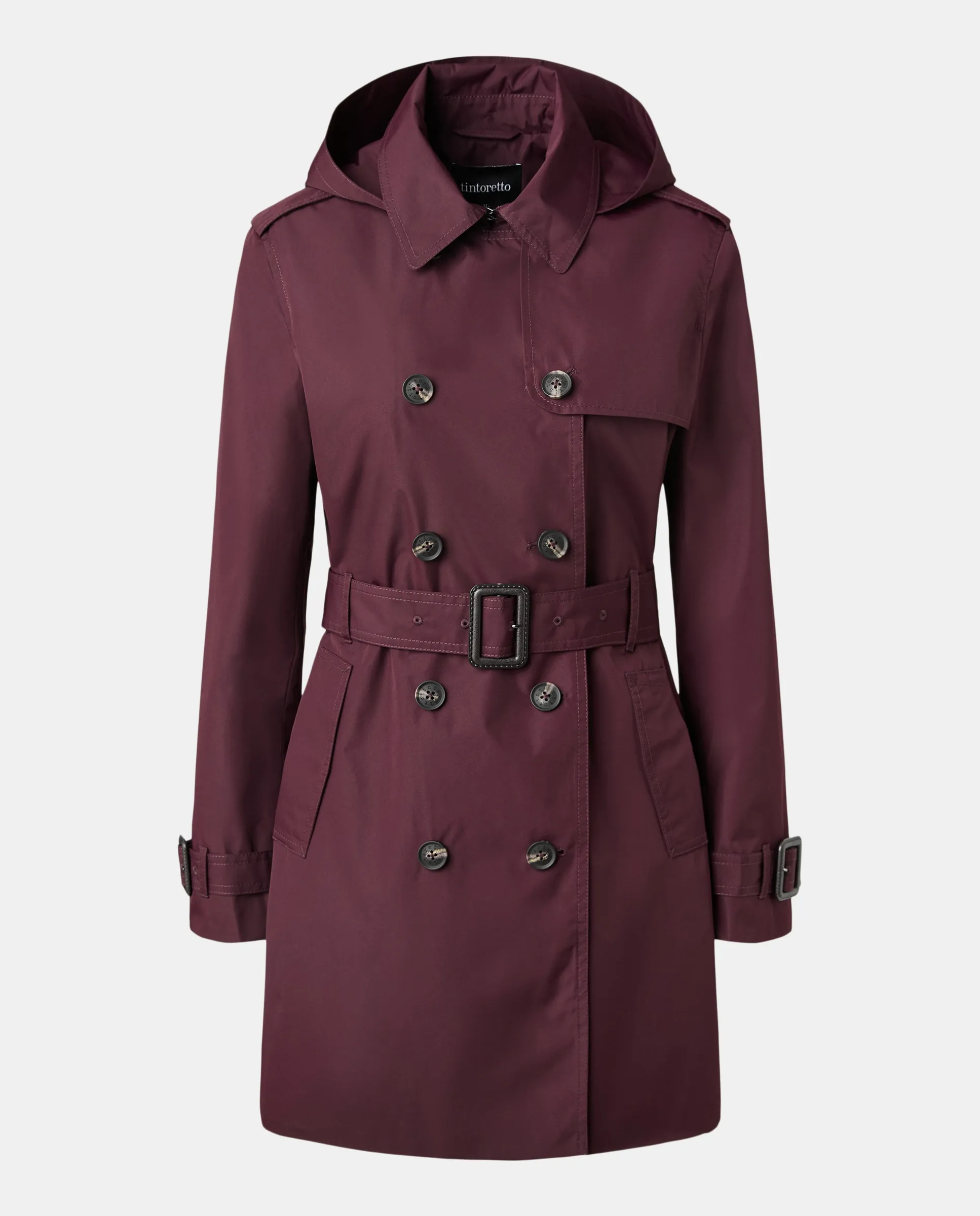 Женский технический тренчкот с капюшоном Tintoretto, бордовый