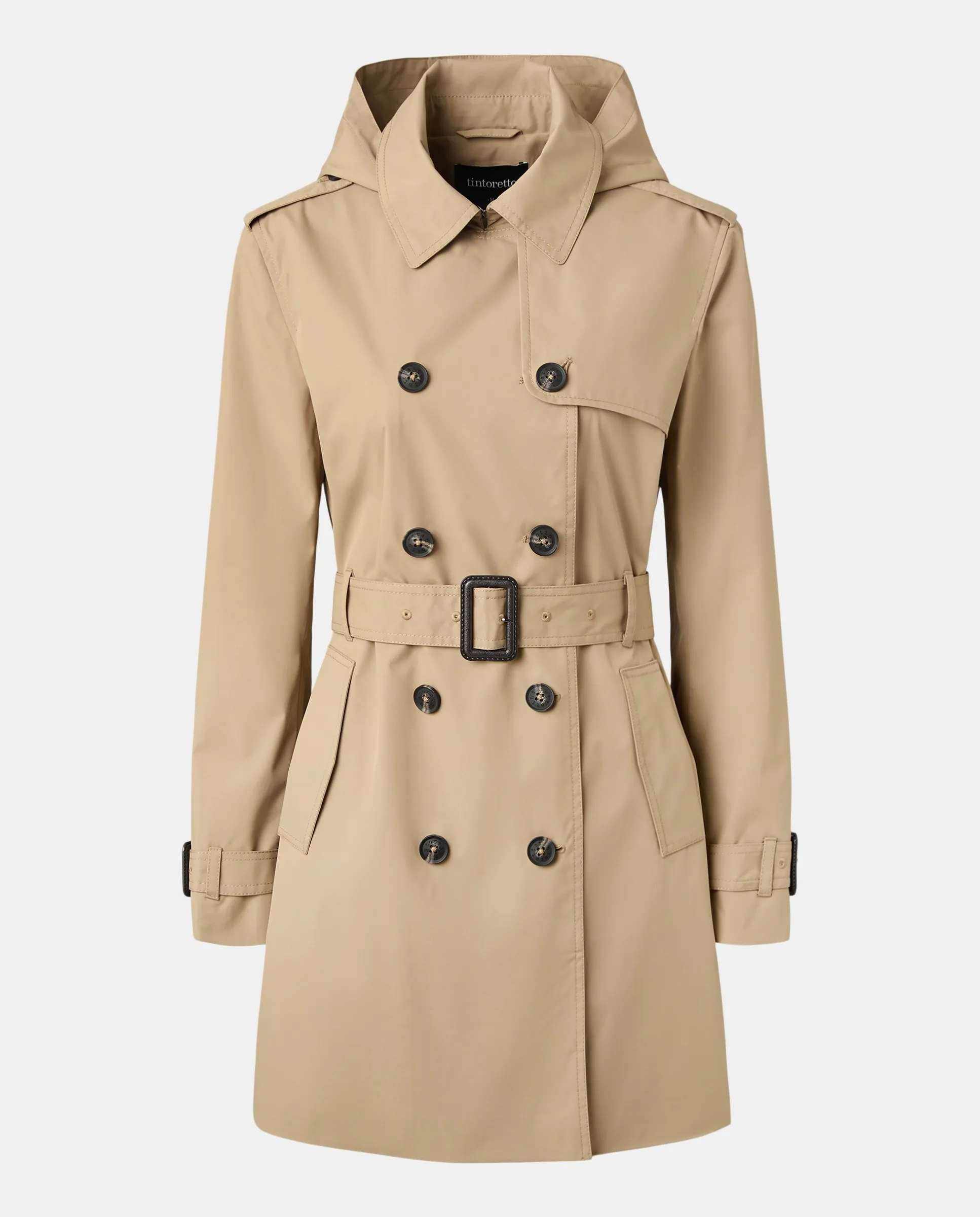 Женский технический тренчкот с капюшоном Tintoretto, песочный