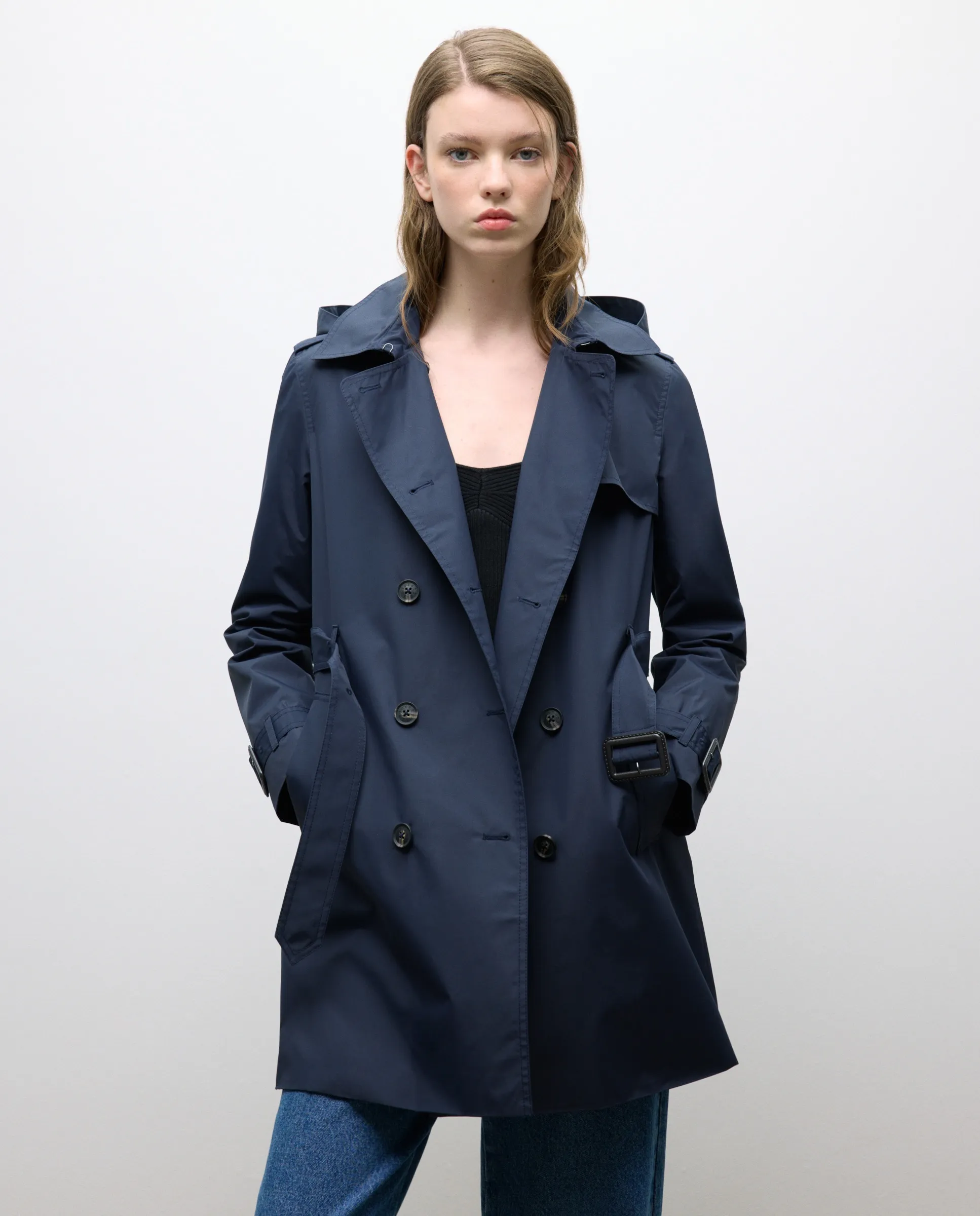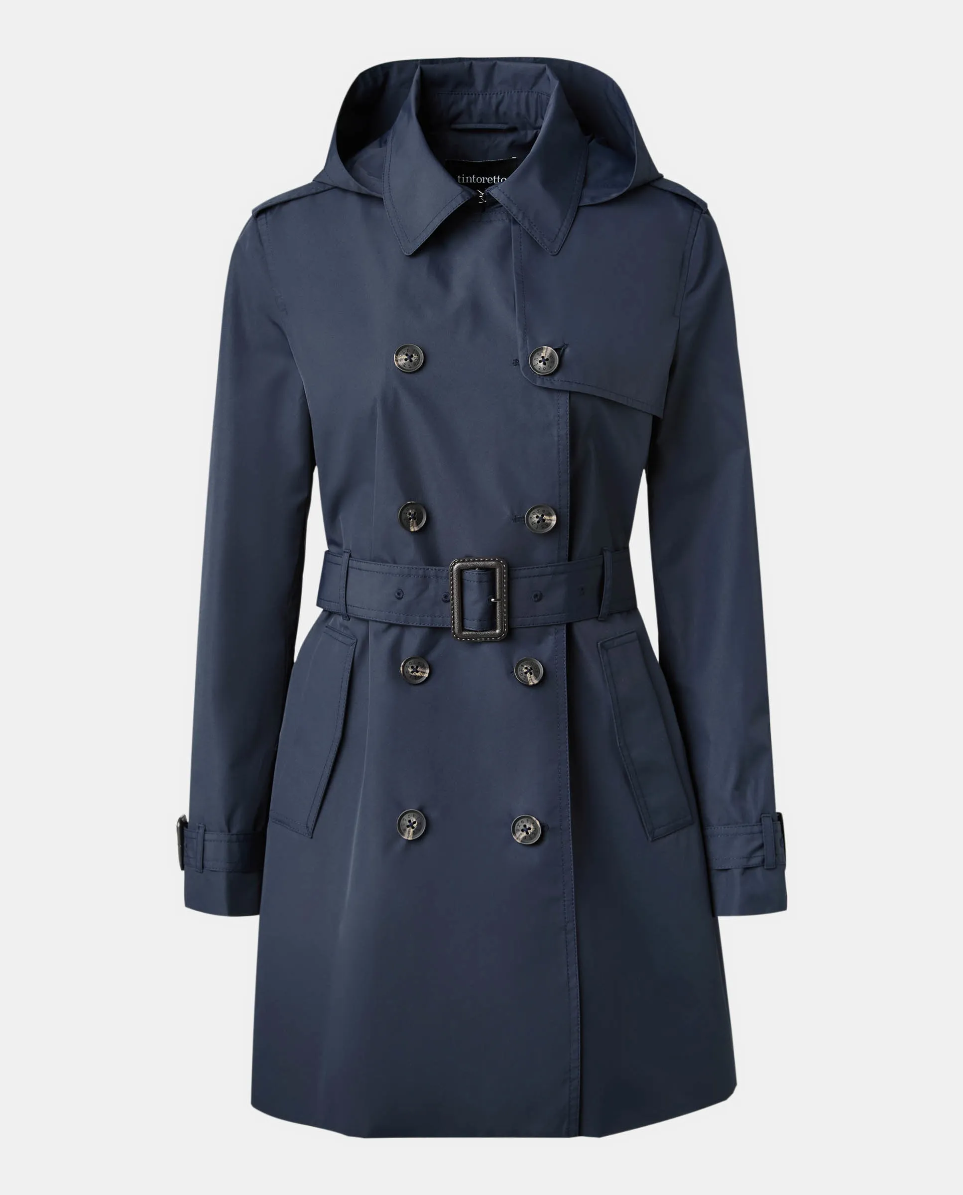 Женский технический тренчкот с капюшоном Tintoretto, темно-синий