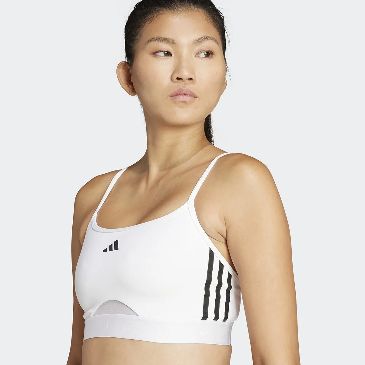 Самая современная сторона adidas. Создайте последний стиль на своих тренировках с этим топом-бреллетом от adidas. Его легкая поддержка включает дышащую технологию AEROREADY, которая поддерживает сухость кожи в любое время. Перекрестные бретельки на спине и жаккардовая лента под грудью с повторяющимся логотипом adidas придают ему спортивный стиль, идеально подходящий для вашего повседневного образа. Этот продукт содержит не менее 70% Переработанных материалов. Используя переработанные материалы, мы уменьшаем отходы, нашу зависимость от конечных ресурсов и след, оставляемый продуктами, которые мы производим. Приталенный крой. Плоская передняя часть. Мягкая и дышащая ткань. AEROREADY. Спинка с перекрёстными бретельками. Дышащая технология