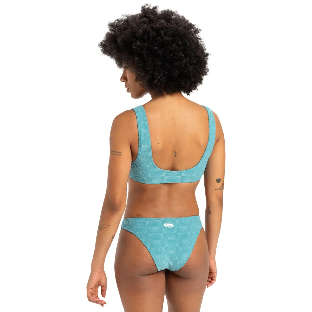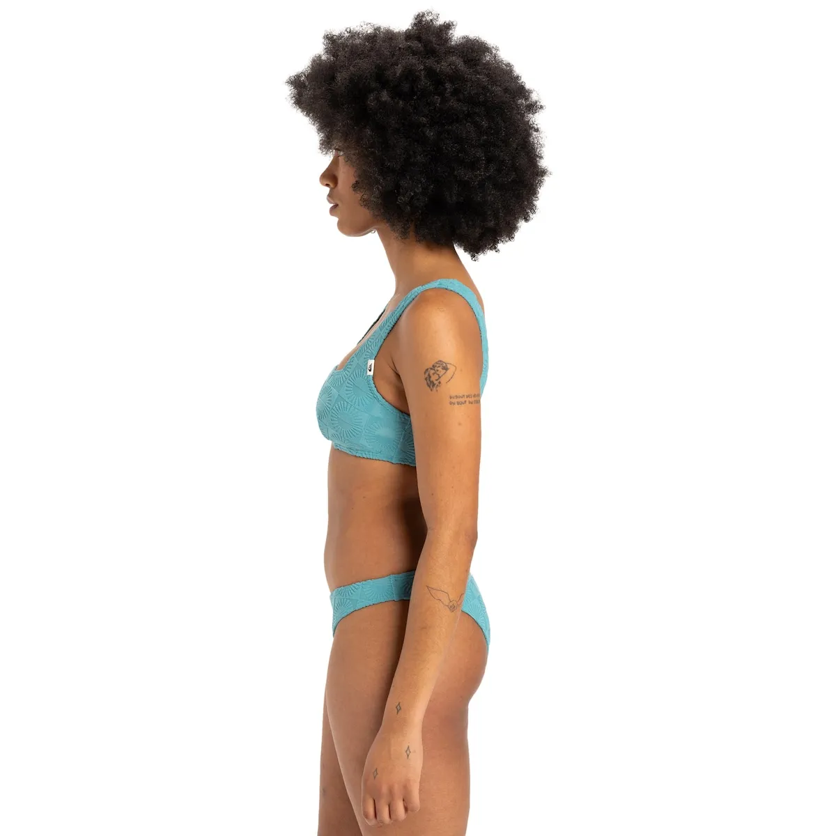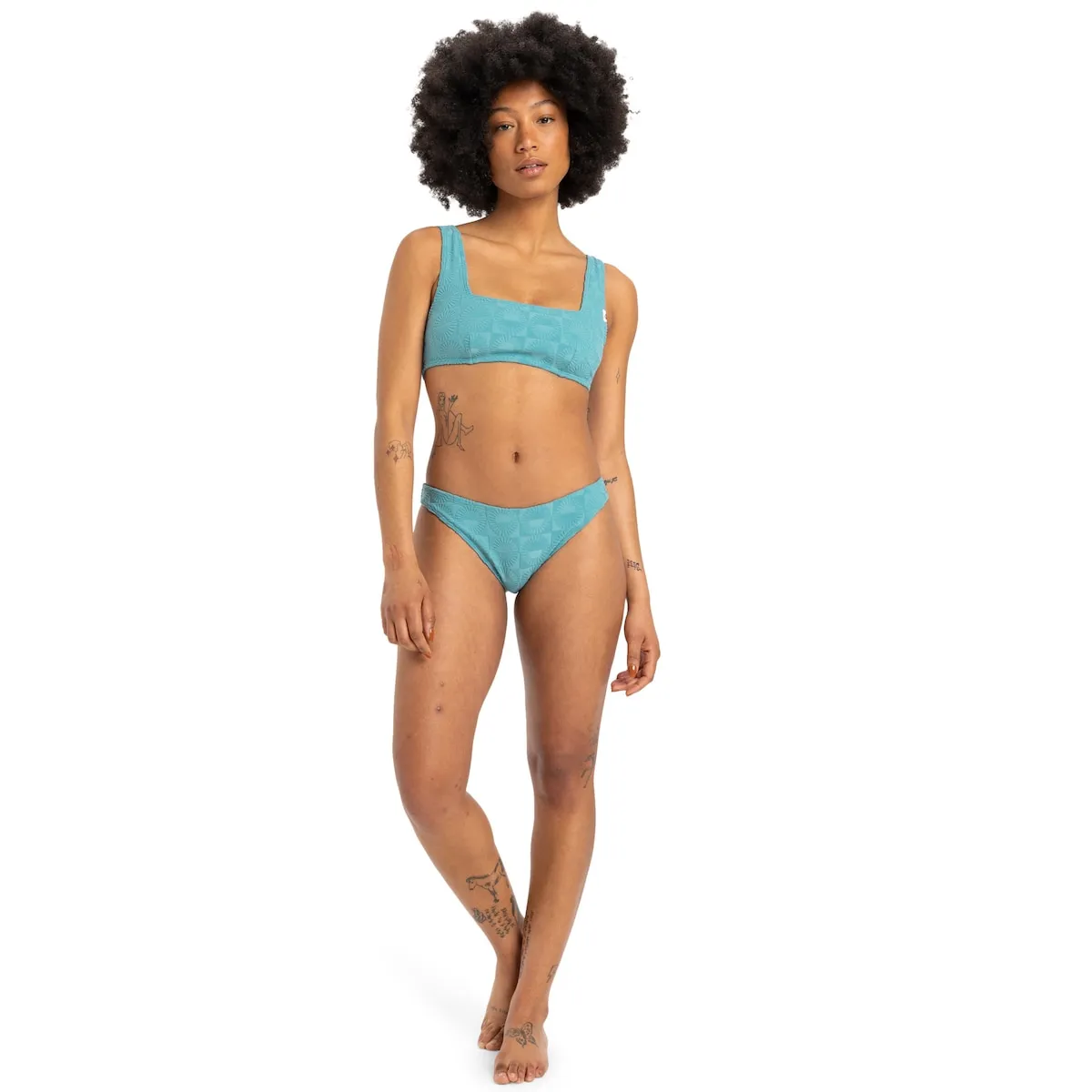 Топ бикини полной длины для женщин. Характеристики включают: Коллекция: Beach Ready, Бренд: смесовая ткань из 58% переработанного полиэстера, 36% полиэстера, 6% эластана [305 г/м2], Дизайн: бандо, Крой: классический, Вырез: квадратный вырез, Внутренний материал: внутренний материал 8% эластан, 92% полиэстер, Подкладка: мягкая и съемная подкладка в чашках, Лямки: фиксированные лямки, Покрытие: полное покрытие, Бренд: этикетка с логотипом на левом боку, Другие характеристики: сделано из переработанных пряж, Рельефная отделка и гравировка по всей бархатной ткани, Плиссировка для подгонки груди и Made Better.