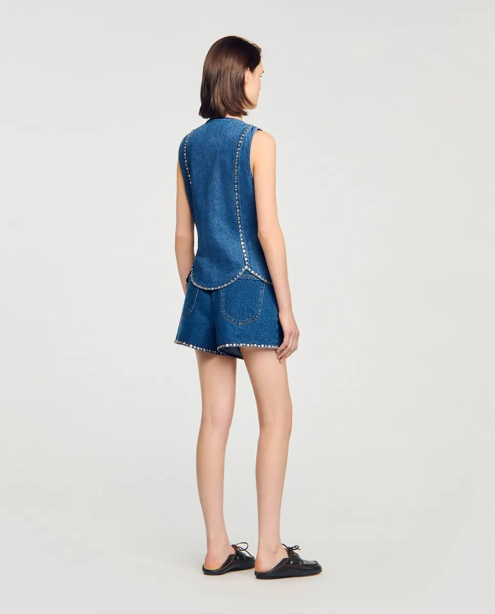 Женский топ из денима со стразами Sandro, синий