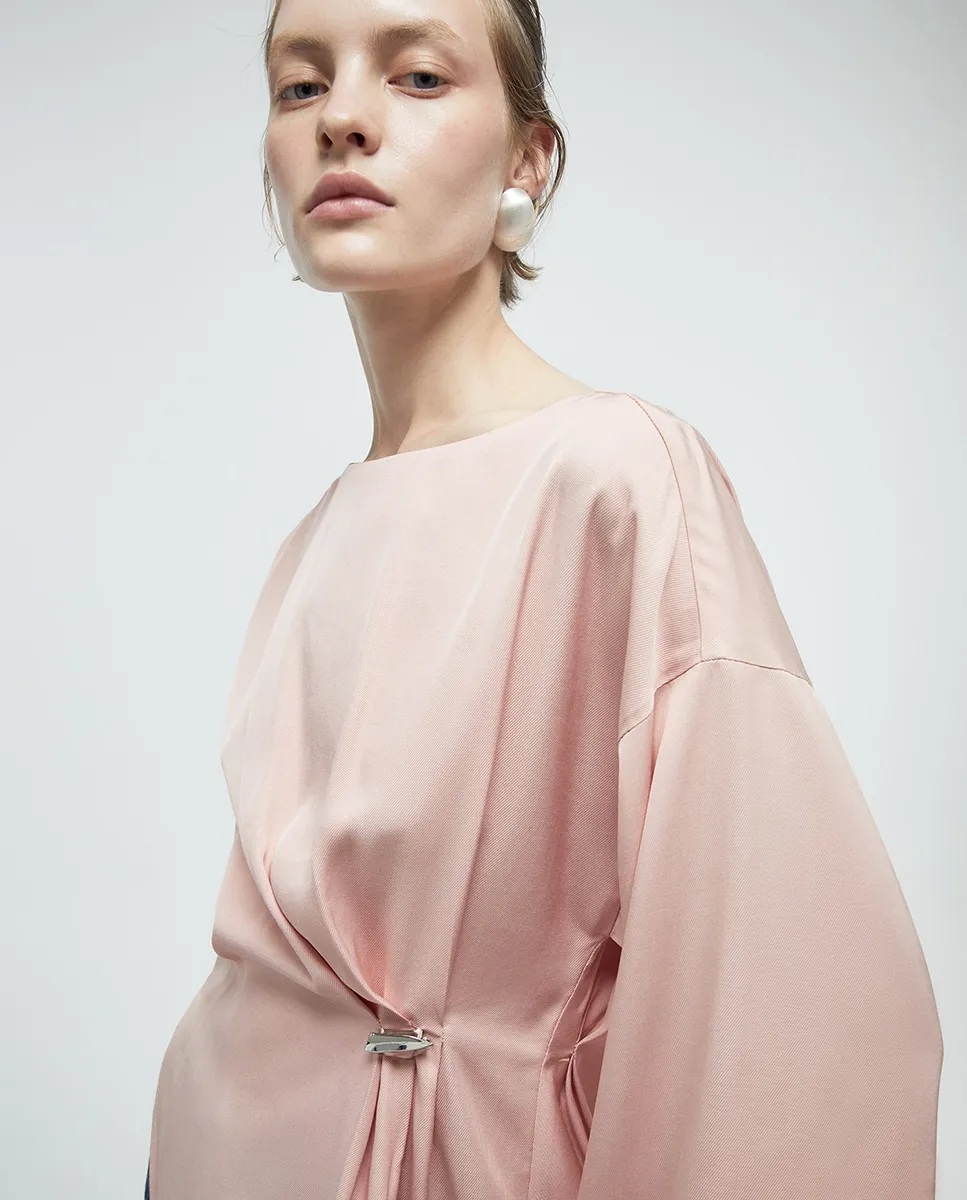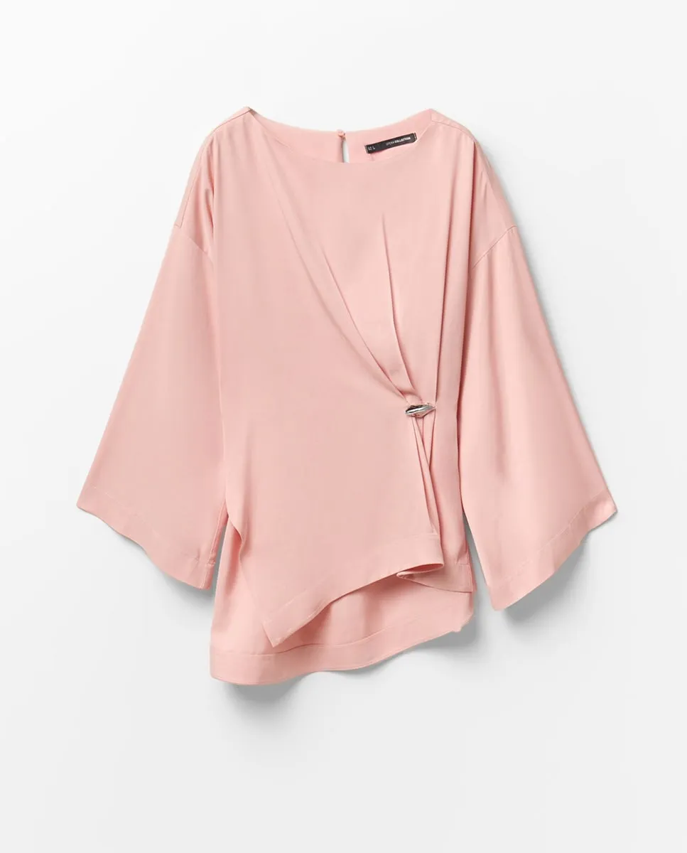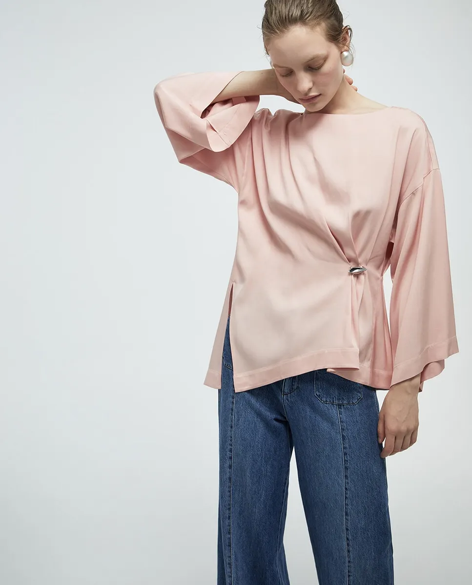 Топ с гладкой тканью, металлической деталью и широкими рукавами
