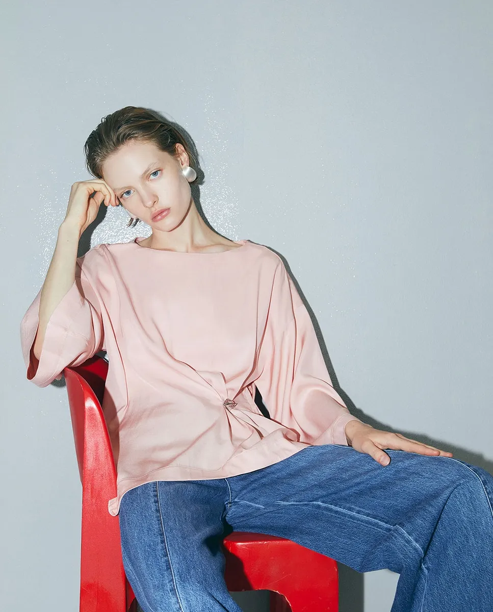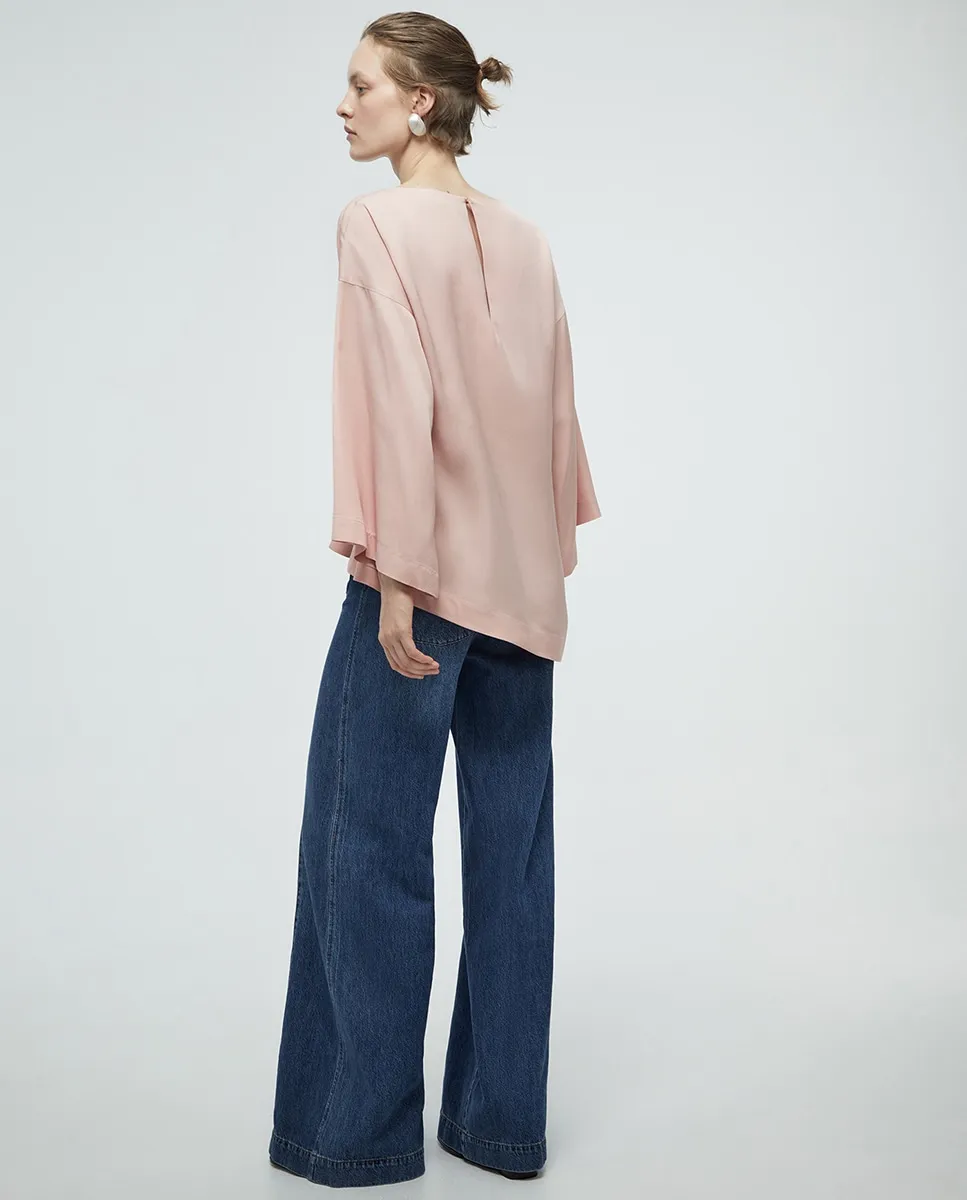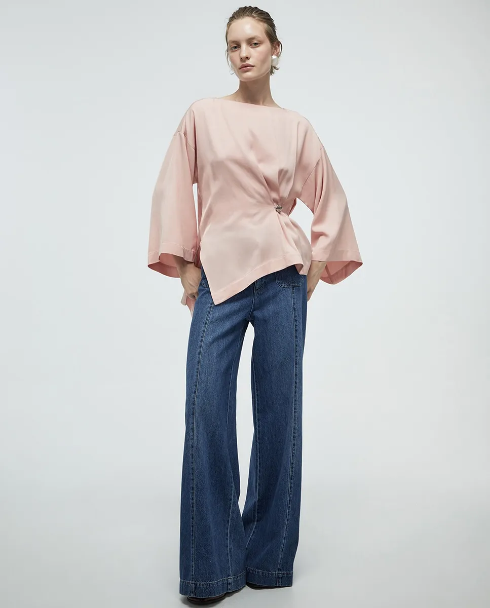 Топ с гладкой тканью, металлической деталью и широкими рукавами