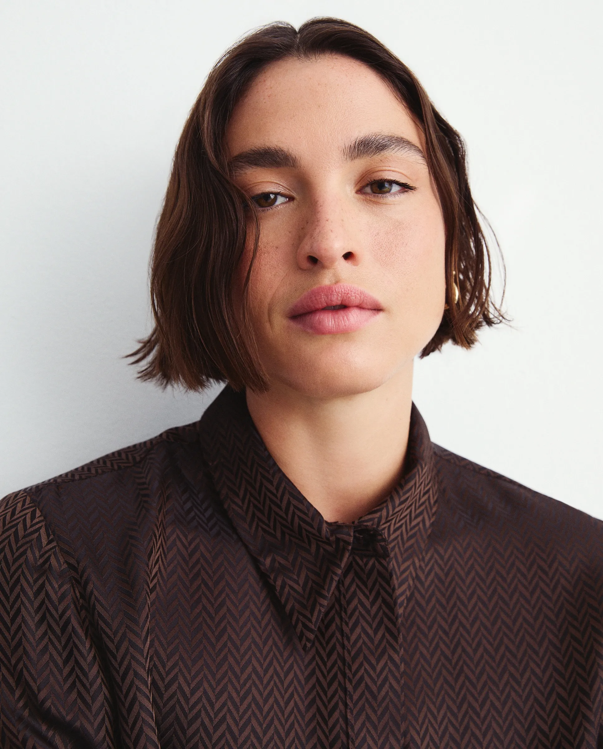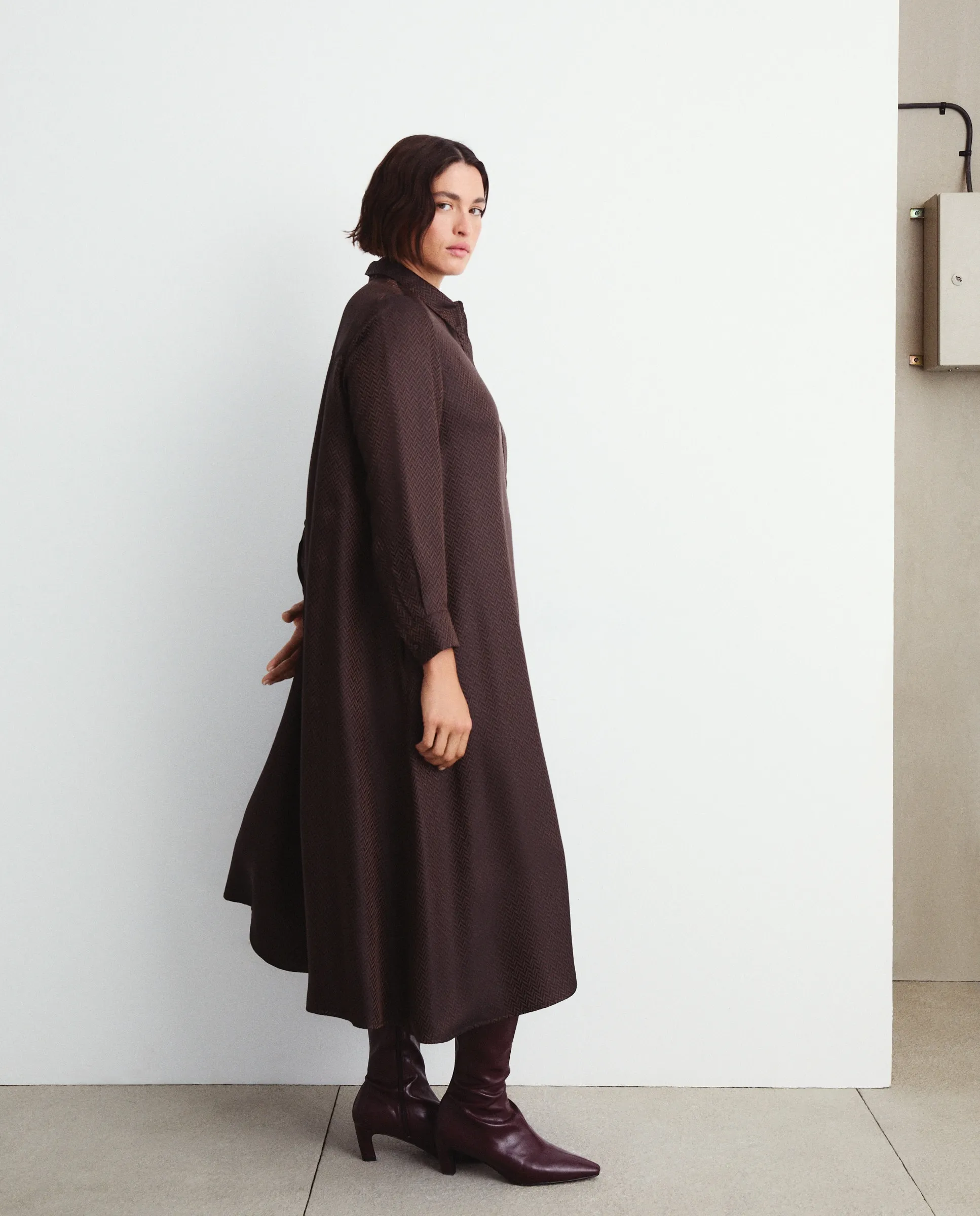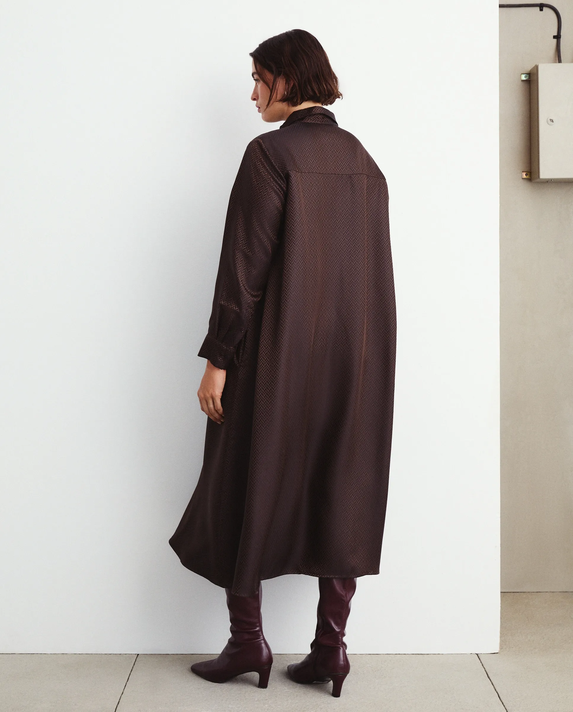 Длинное платье с длинными рукавами и жаккардовым узором "елочка".