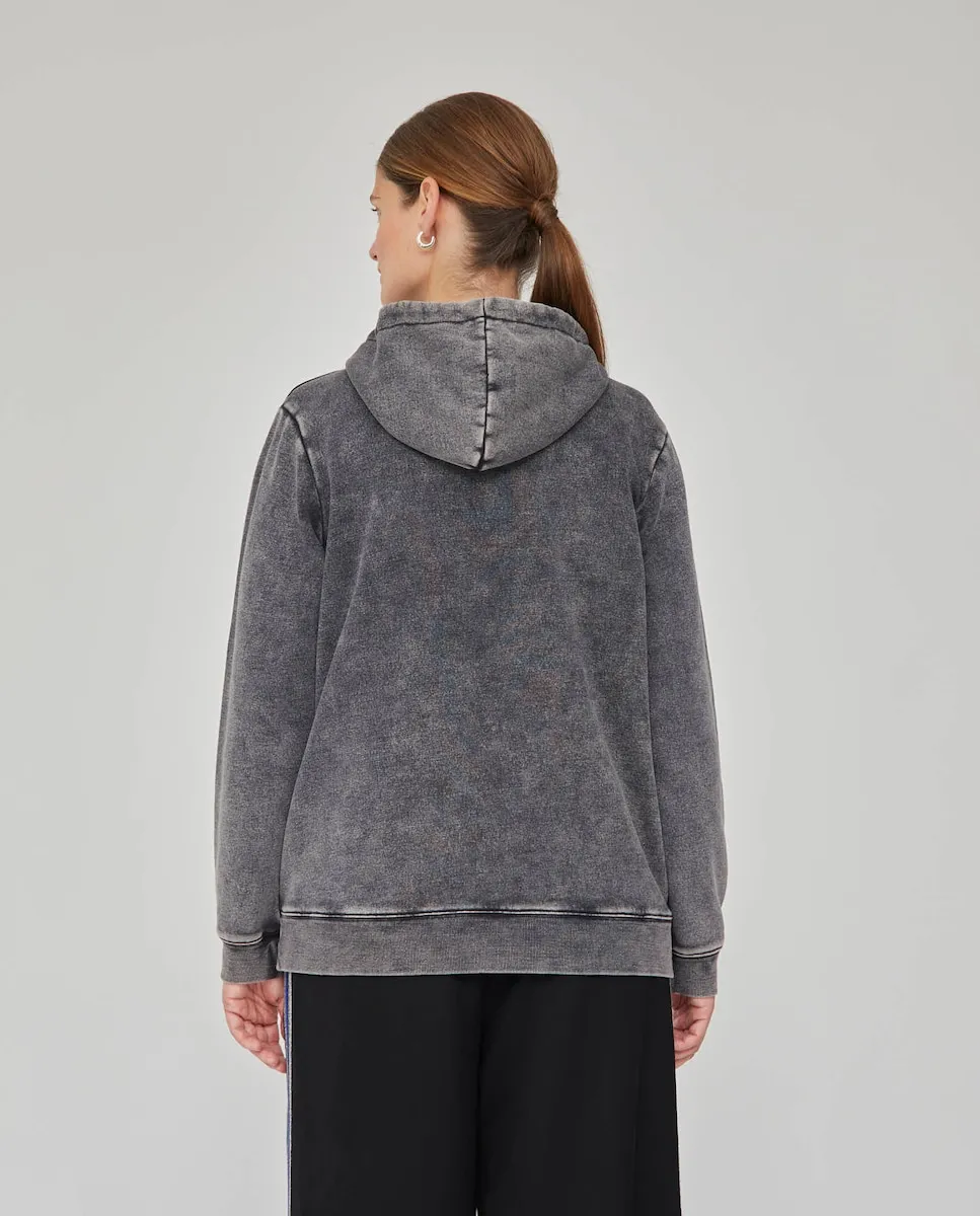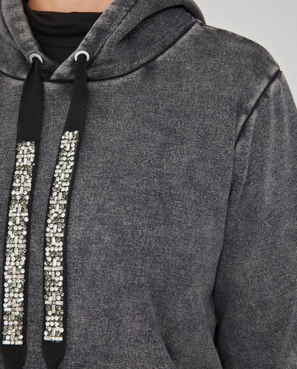 Толстовка с эффектом стирки, регулируемым капюшоном и декоративным шнурком. Долгий рукав с манжетами.