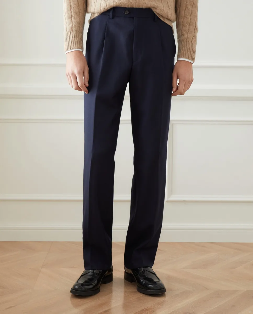 Мужские классические брюки с одной складкой из 100% шерсти.