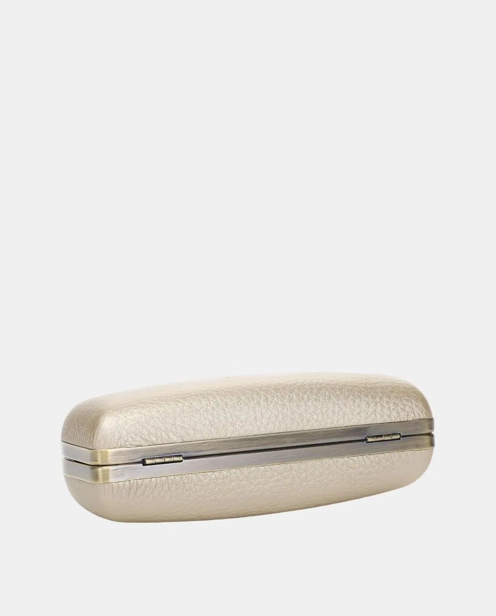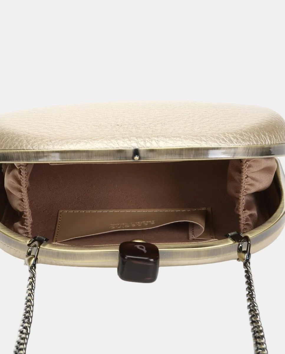 Вечерний клатч с металлизированным покрытием в форме полумесяца, идеален для особых мероприятий. Его подкладка включает небольшой организующий карман, а застежка с носиком гарантирует безопасность. Кроме того, он оснащен цепочкой на плечо для большего удобства.